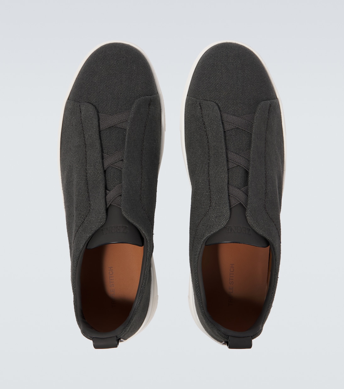 Знаменитые кроссовки Zegna Triple Stitch с верхом из хлопка и льна создают непринужденный и стильный образ. Кожаная подкладка и белая резиновая подошва дополнены фирменными тройными перекрещивающимися резинками.