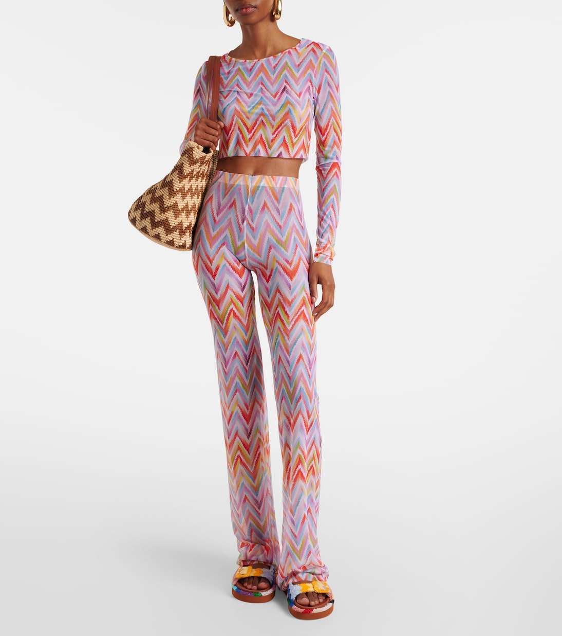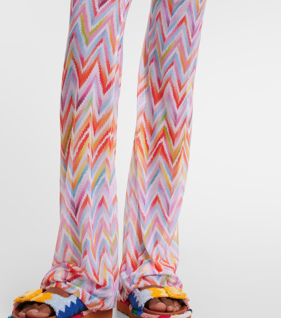 Знаменитый зигзагообразный узор Missoni был впервые представлен в 1950-х годах и теперь является символом итальянской роскоши. Эти прямые брюки, выполненные из тюля, украшены ярким фирменным принтом по всей поверхности.