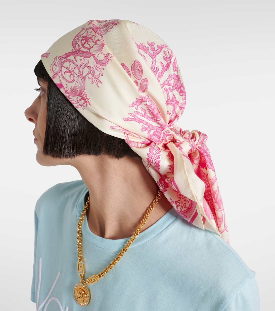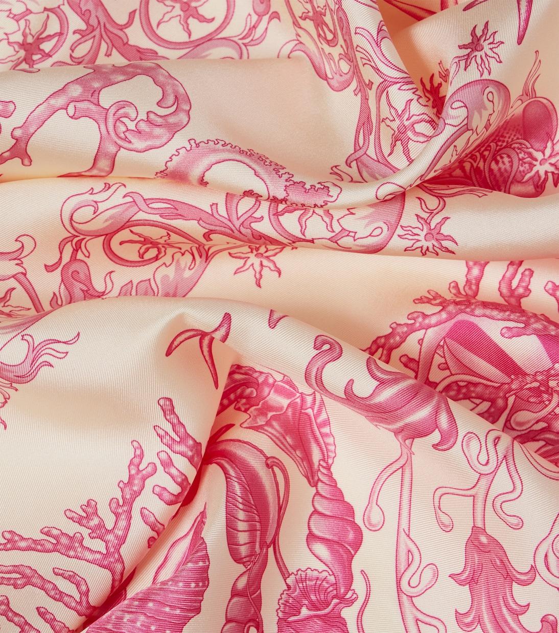 Шелковый сатиновый шарф Underwater Barocco Versace, Eggshell+Dragonfruit