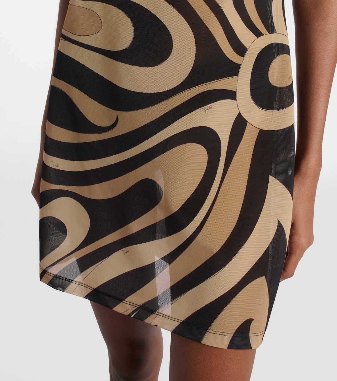 Знаменитый психоделический завиток – фирменный знак бренда, благодаря которому Pucci получил титул «Принца принтов». Мини-платье Marmo демонстрирует этот смелый принт, создавая элегантный силуэт с яркой окантовкой.
