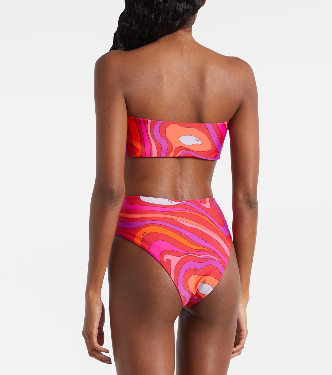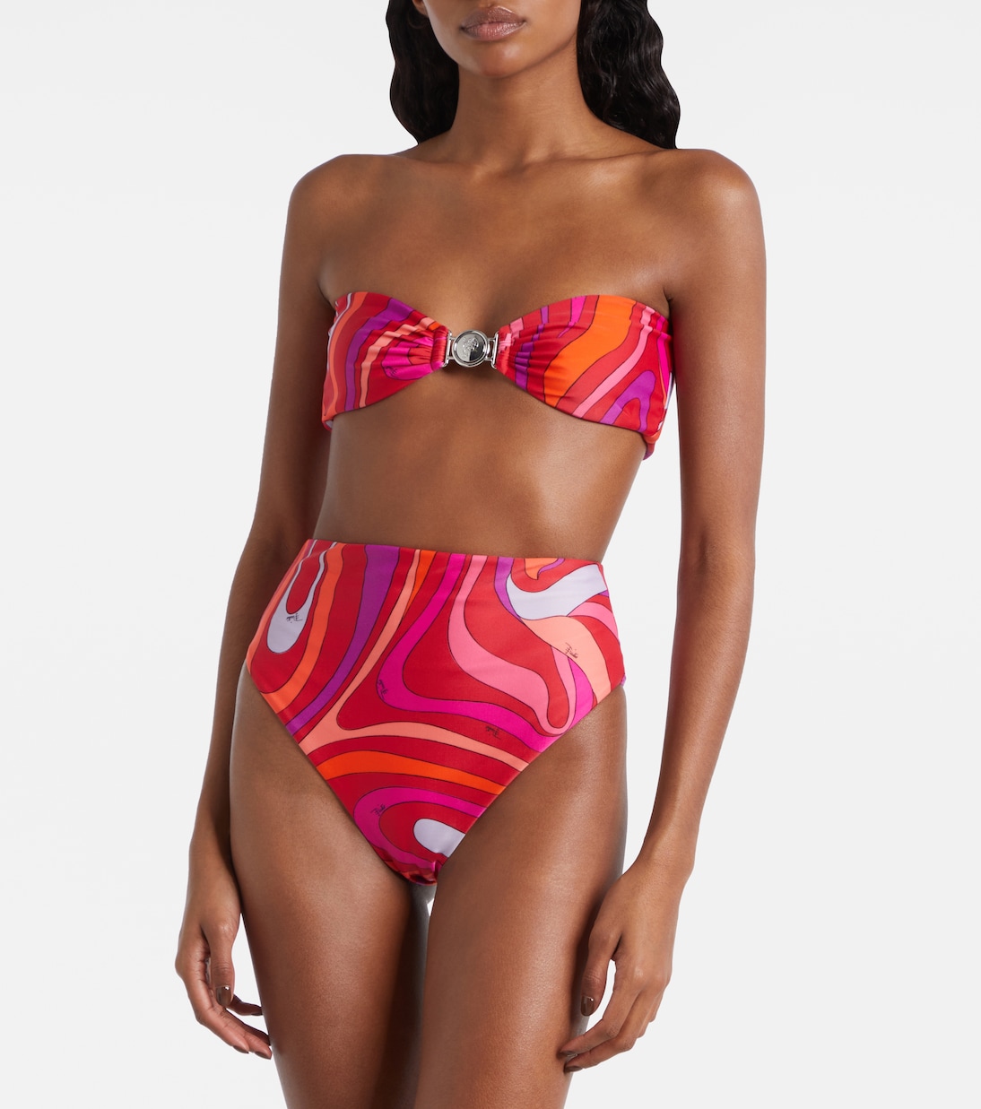 Знаменитый психоделический мотив в виде завитков — фирменный знак бренда, благодаря которому Pucci получил титул «Принца принтов». Этот бикини-топ без бретелек украшен монетой по центру и фирменным принтом Marmo по всей поверхности.