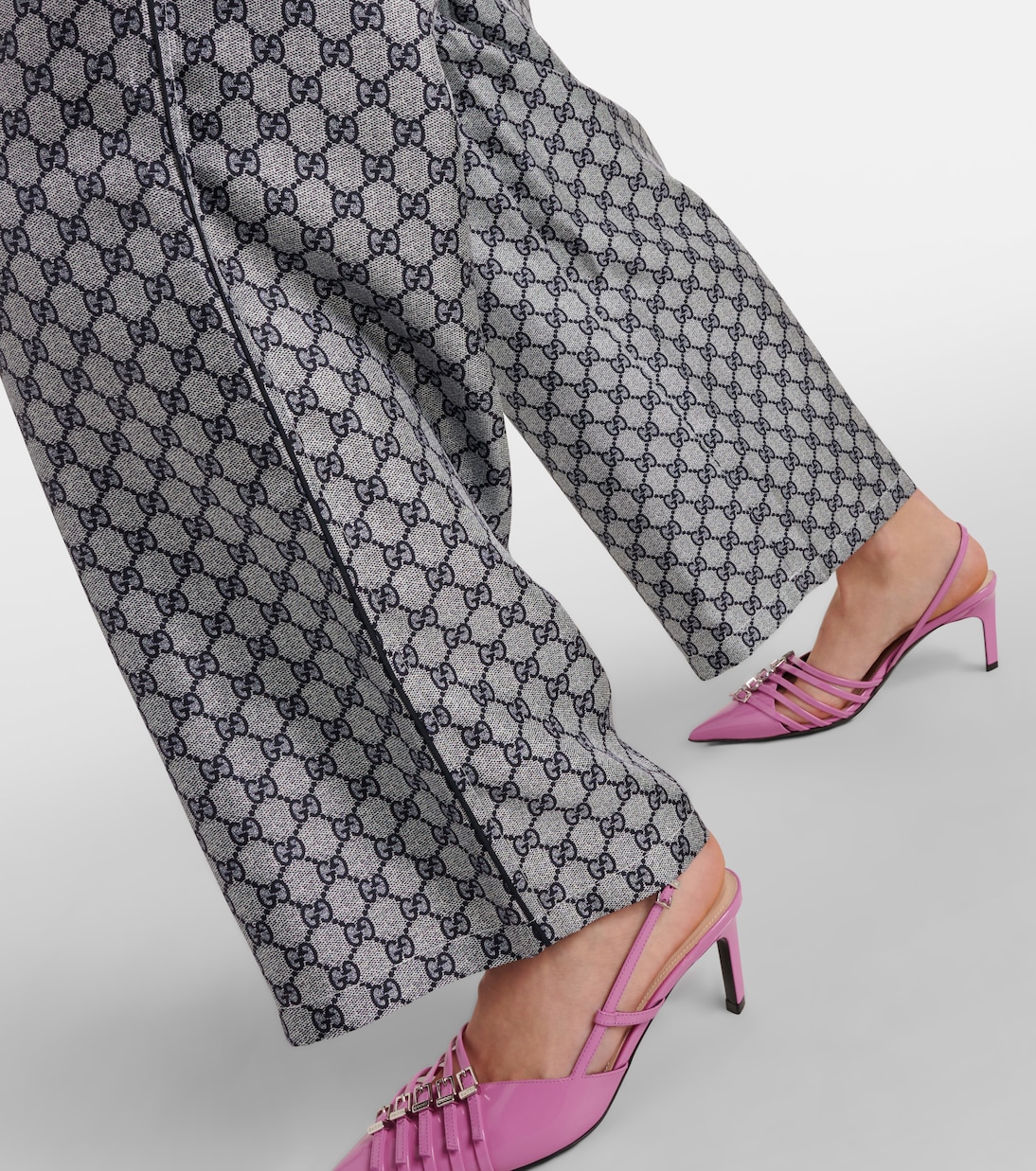 GG шелковые брюки-клеш из твила Gucci, Blue/White/Mc