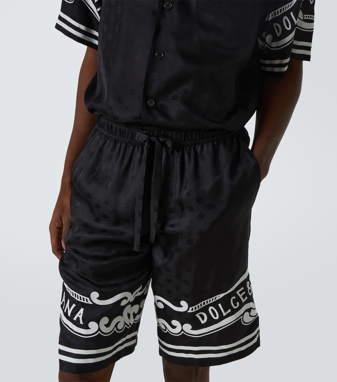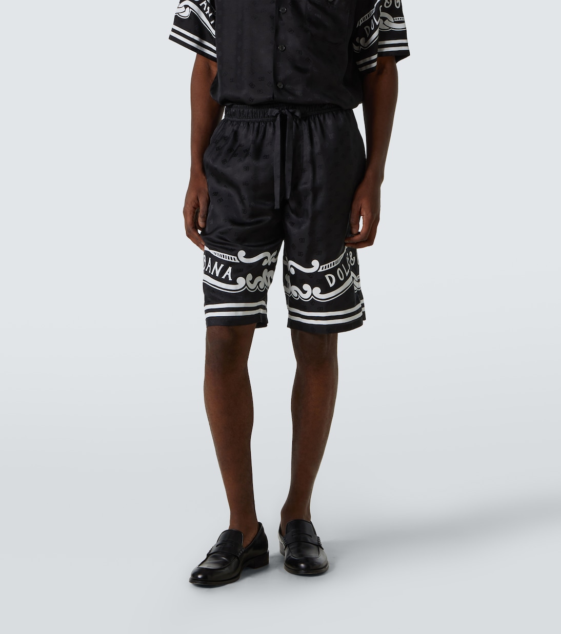 Бермуды из шелкового твила с узором пейсли Dolce&Gabbana, черный