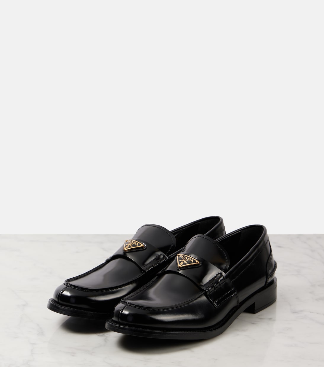 Лоферы из гладкой кожи с логотипом Prada, черный