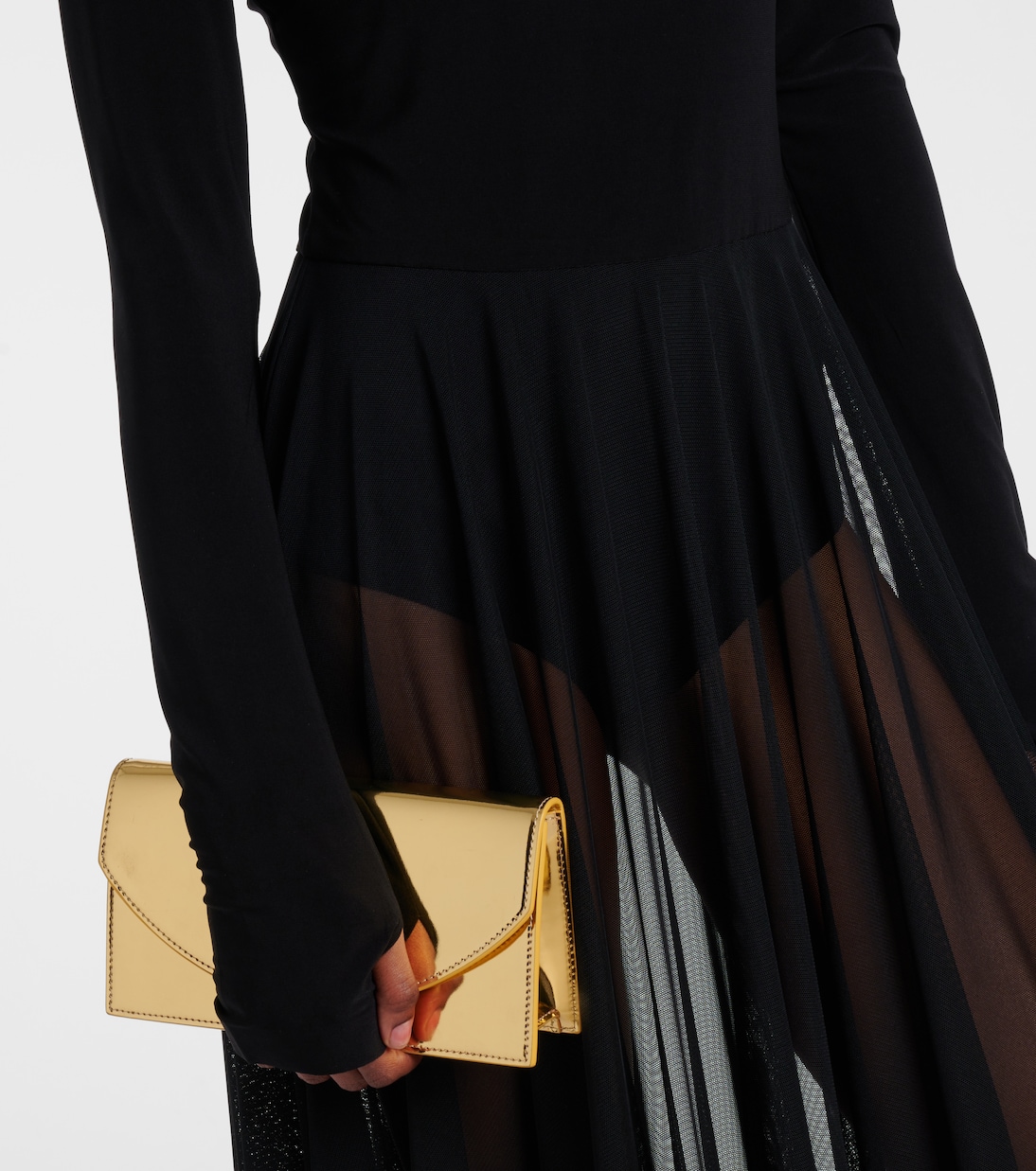 Игровой подход к дизайну от удостоенного наград дизайнера Нормы Камали покоряет мир с 1960-х годов. Взять, к примеру, это платье миди: оно состоит из прозрачной плиссированной сетчатой юбки, надетой поверх водолазки из эластичного трикотажа.