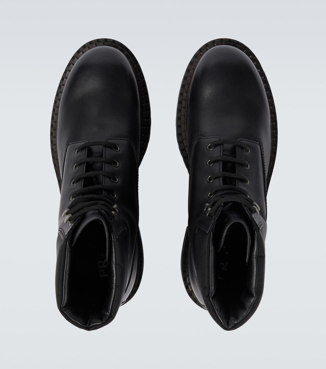 Кожаные ботинки до щиколотки из Re-Nylon Prada, черный