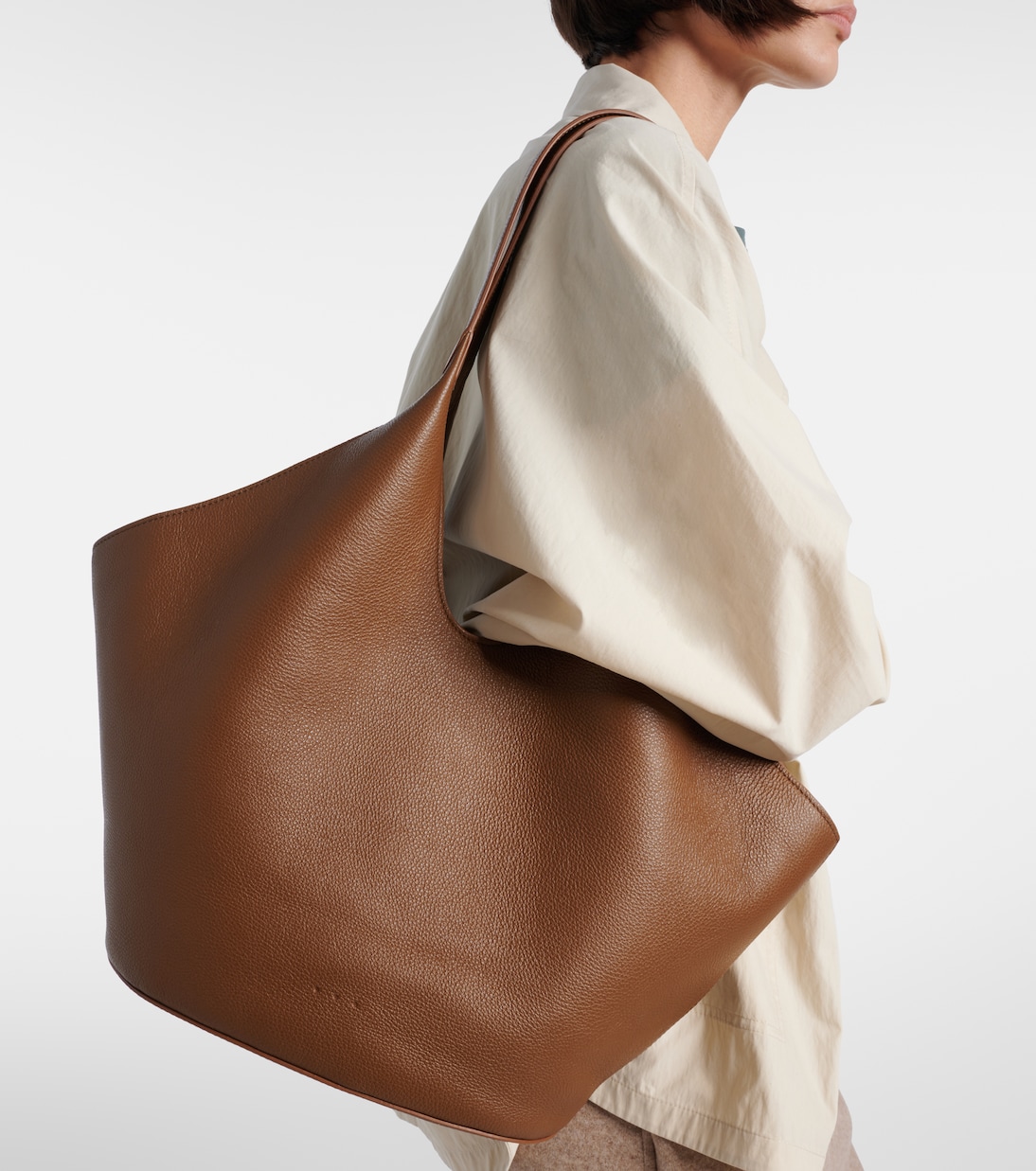 Скульптурные силуэты и лучшие материалы формируют представление Эстер Экме об изысканном минимализме. Сумка-тоут Phantom выполнена из зернистой кожи, имеет плавный силуэт и две верхние ручки и магнитную застёжку.