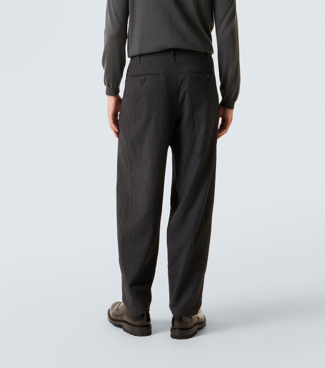 Известный своей лаконичной современностью, Giorgio Armani предлагает изысканные базовые модели, такие как эти брюки. Они изготовлены из натуральной шерсти со струящимися, зауженными брючинами, мягкими складками и множеством карманов.