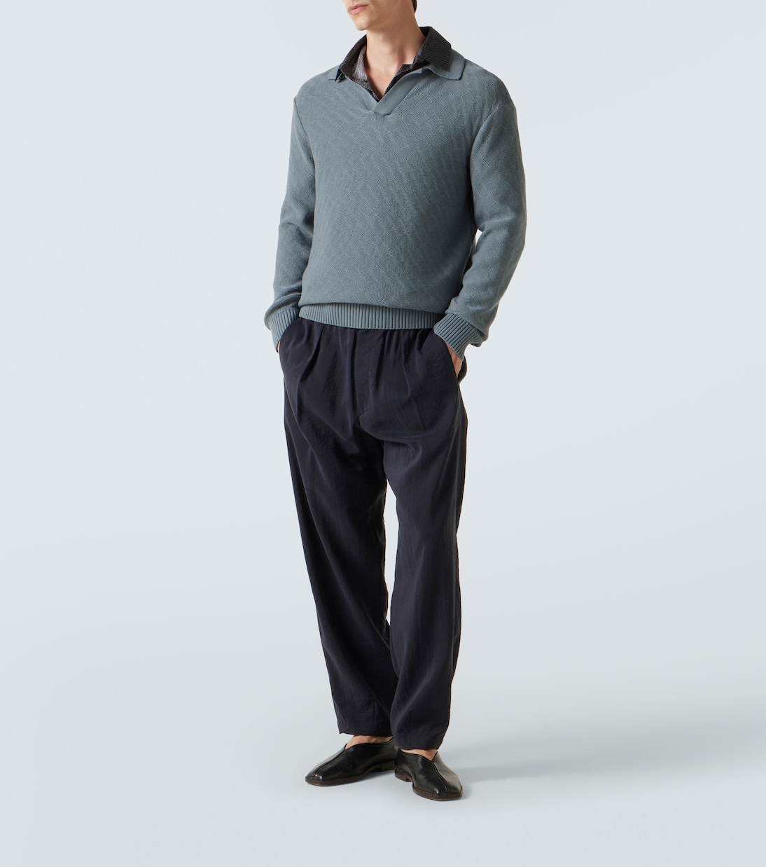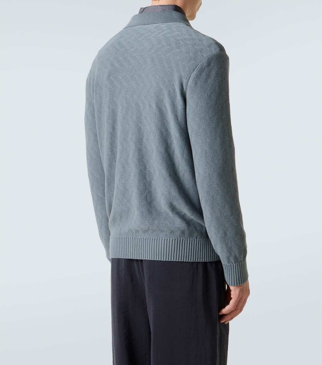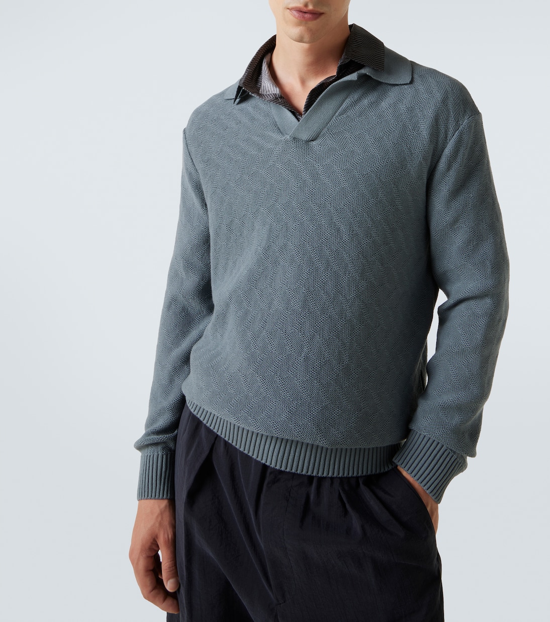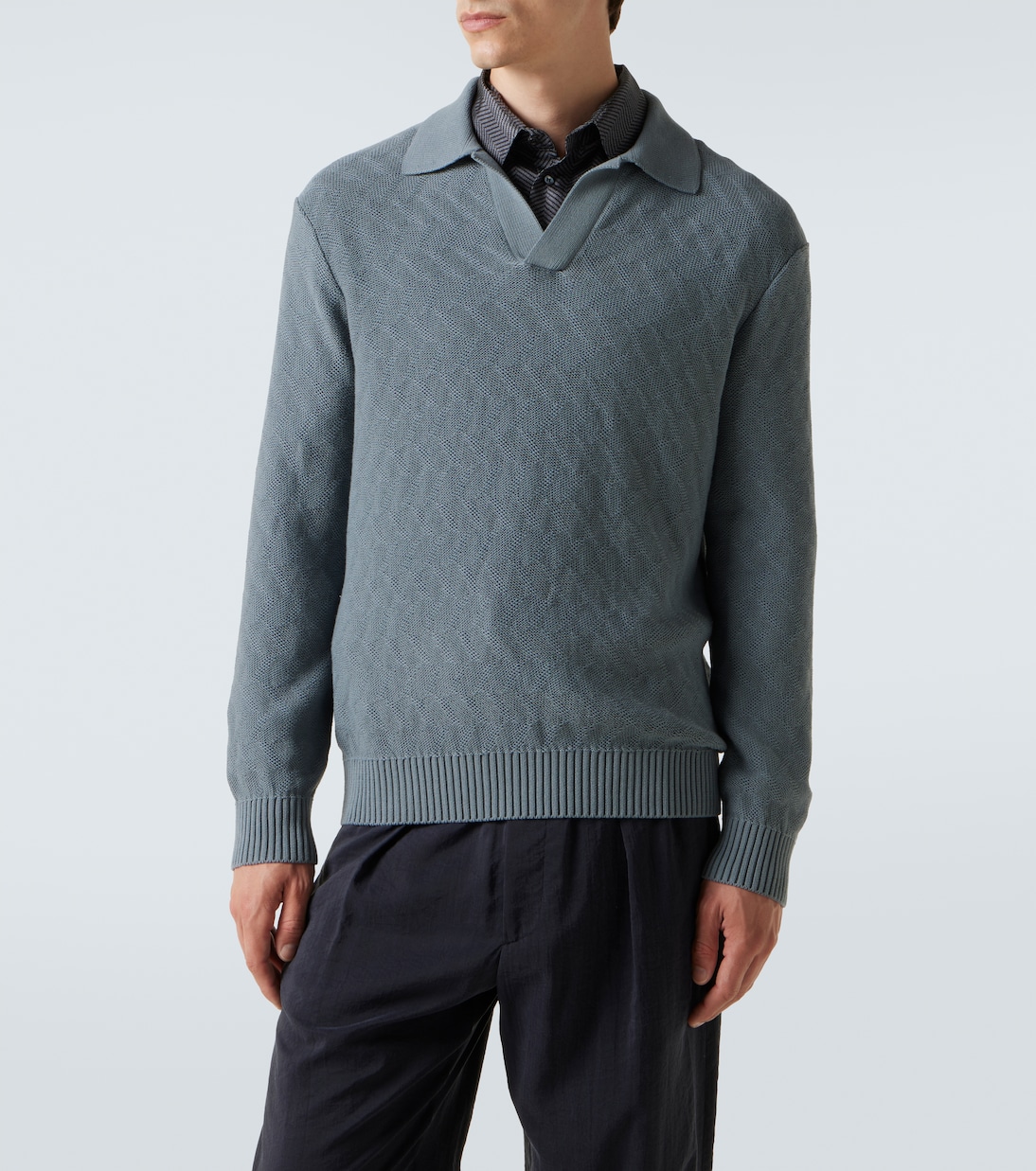 Известный своей лаконичной современностью, Giorgio Armani представляет элегантную интерпретацию классических силуэтов и безупречного пошива. Этот свитер-поло свободного силуэта, изготовленный в Италии из чистого хлопка, имеет тональный жаккардовый узор.