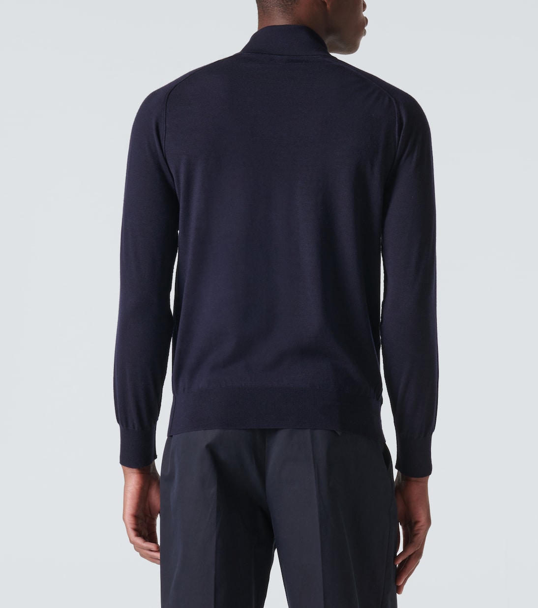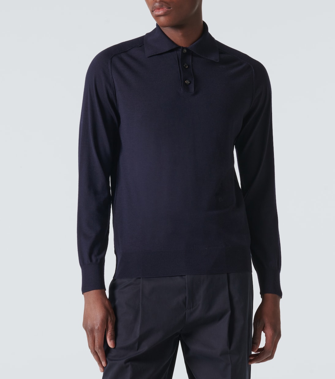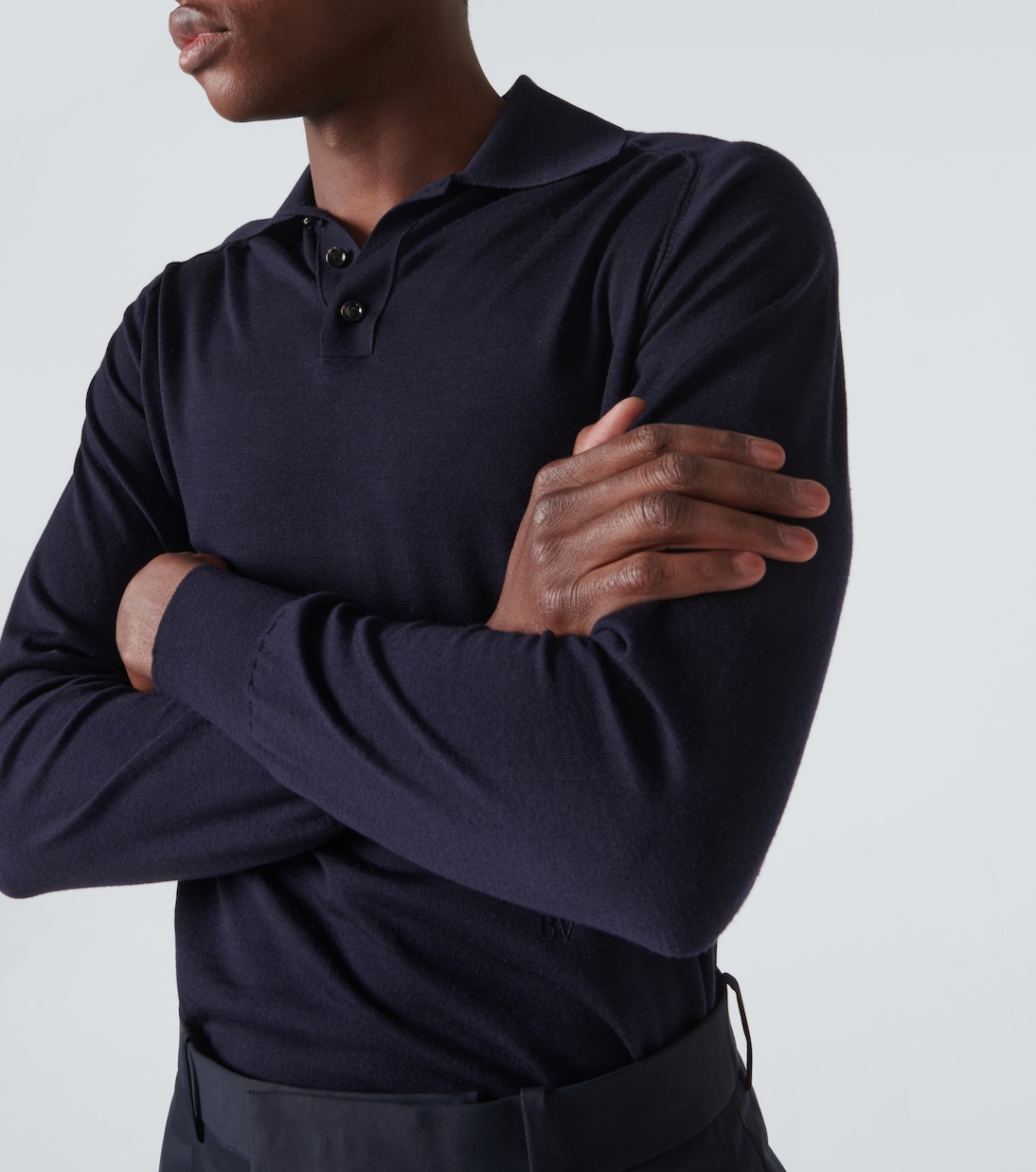 Шерстяной джерси поло свитер Bottega Veneta, темно-синий