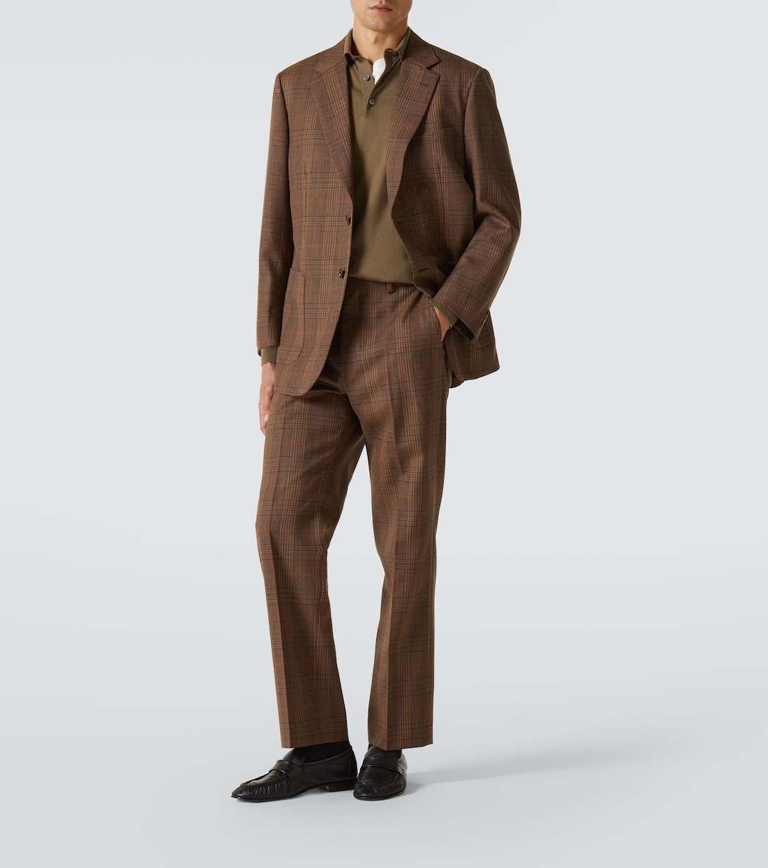 Брюки из шерсти в клетку "Принц Уэльский" Auralee, Brown Check 72 381₽