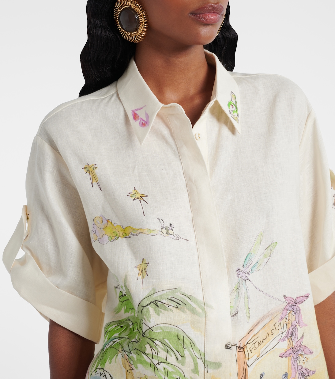 Современный бренд Alémais, делающий ставку на ремесленное искусство, воспевает искусство моды, предлагая эклектичное сочетание узоров и принтов, примером чему служит рубашка Anouk. Эта модель с короткими рукавами, выполненная из лёгкого льна, одновременно игривая и элегантная.