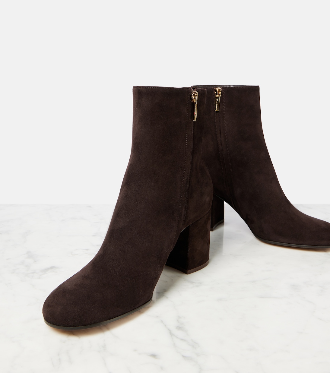 Изготовленные из материалов высочайшего качества, модели Gianvito Rossi изготавливаются вручную с использованием традиционных ремесленных технологий и инновационных технологий. Ботильоны Joelle выполнены из бархатистой гладкой замши с блочным каблуком высотой 70 мм и круглым носком.