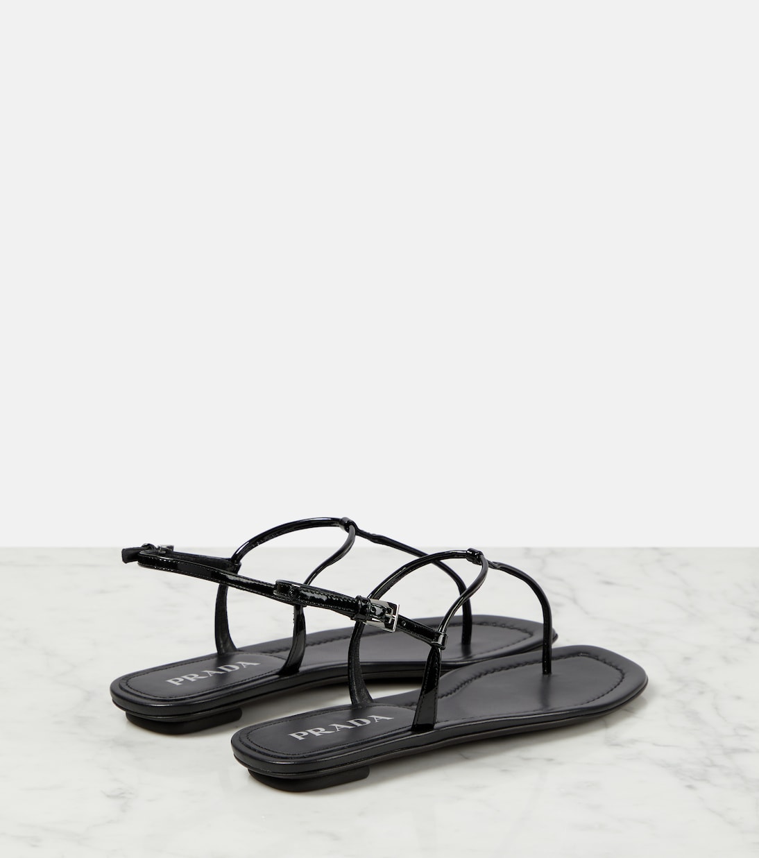 Лаковые сандалии-танга Prada, черный 88 230₽