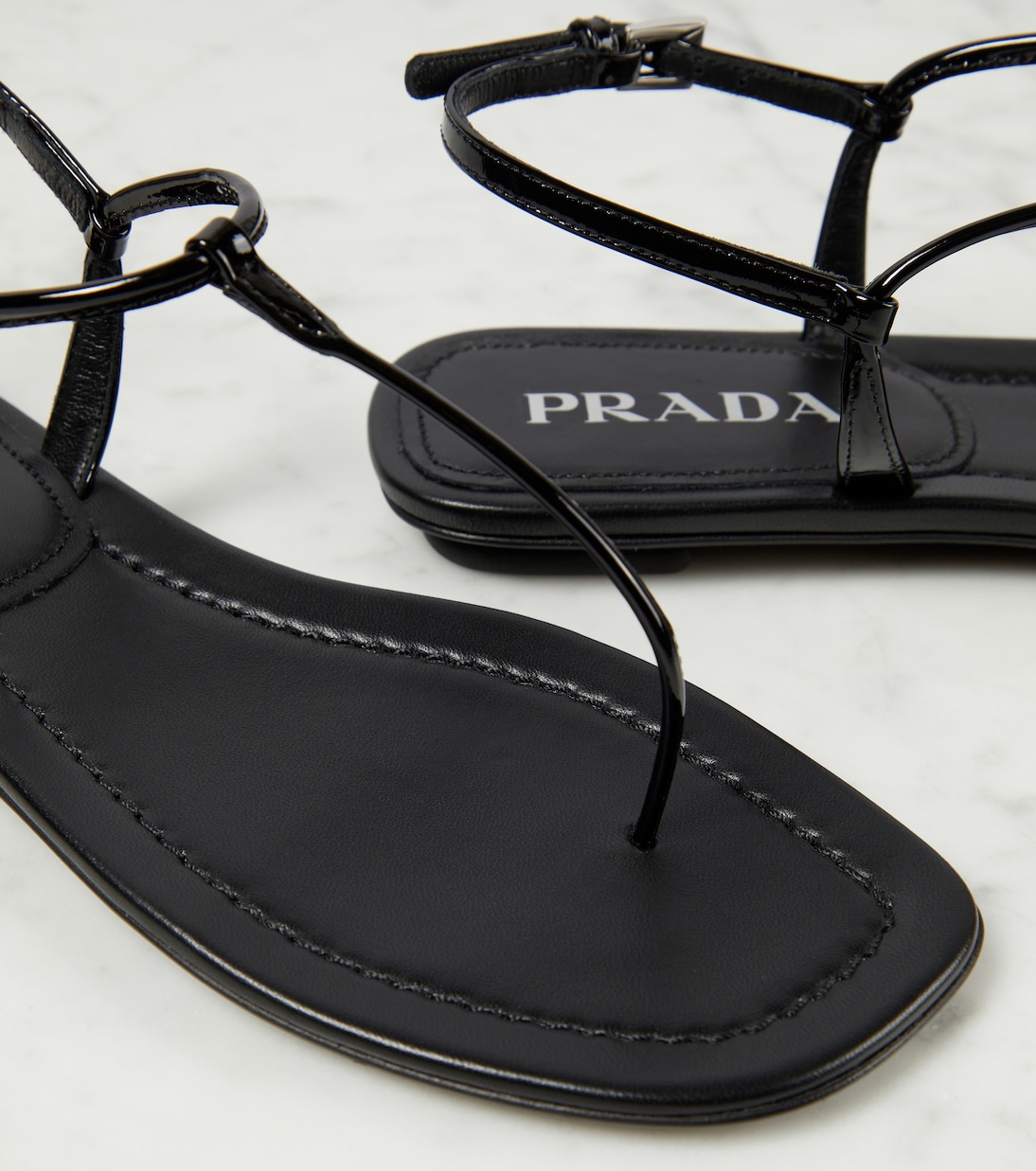 Лаковые сандалии-танга Prada, черный