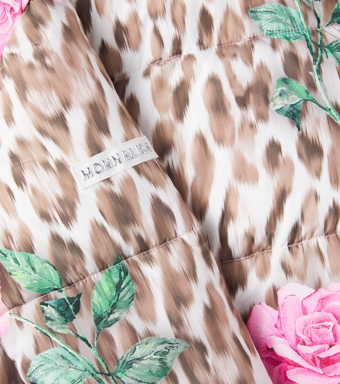 Согрейте и подарите маленьким модницам уют и комфорт в стильных моделях, таких как эта стеганая куртка от Monnalisa. Эта модель с леопардовым принтом, наполненная технологичными волокнами, украшена напечатанными розами и оборками, которые придают ей особый шарм.