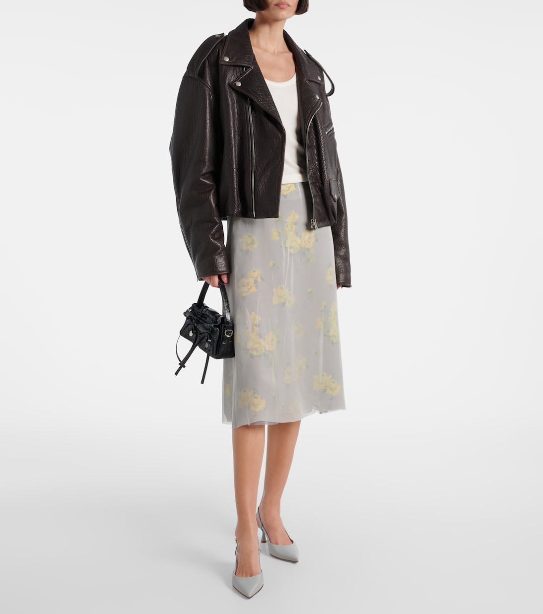 Изготовленные из материалов высочайшего качества, модели Gianvito Rossi изготавливаются вручную с использованием традиционных ремесленных технологий и инновационных технологий. Туфли Ascent, выполненные исключительно из серой кожи, представляют собой классическую модель с открытой пяткой и каблуком-рюмочкой высотой 55 мм.