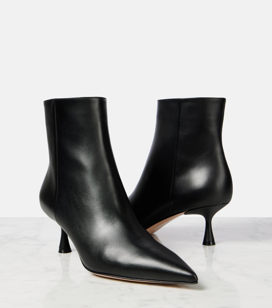 Изготовленные из материалов высочайшего качества, модели Gianvito Rossi изготавливаются вручную с использованием традиционных ремесленных технологий и инновационных технологий. Эти ботильоны на невысоком удобном каблуке-рюмочке искусно изготовлены из гладкой кожи.
