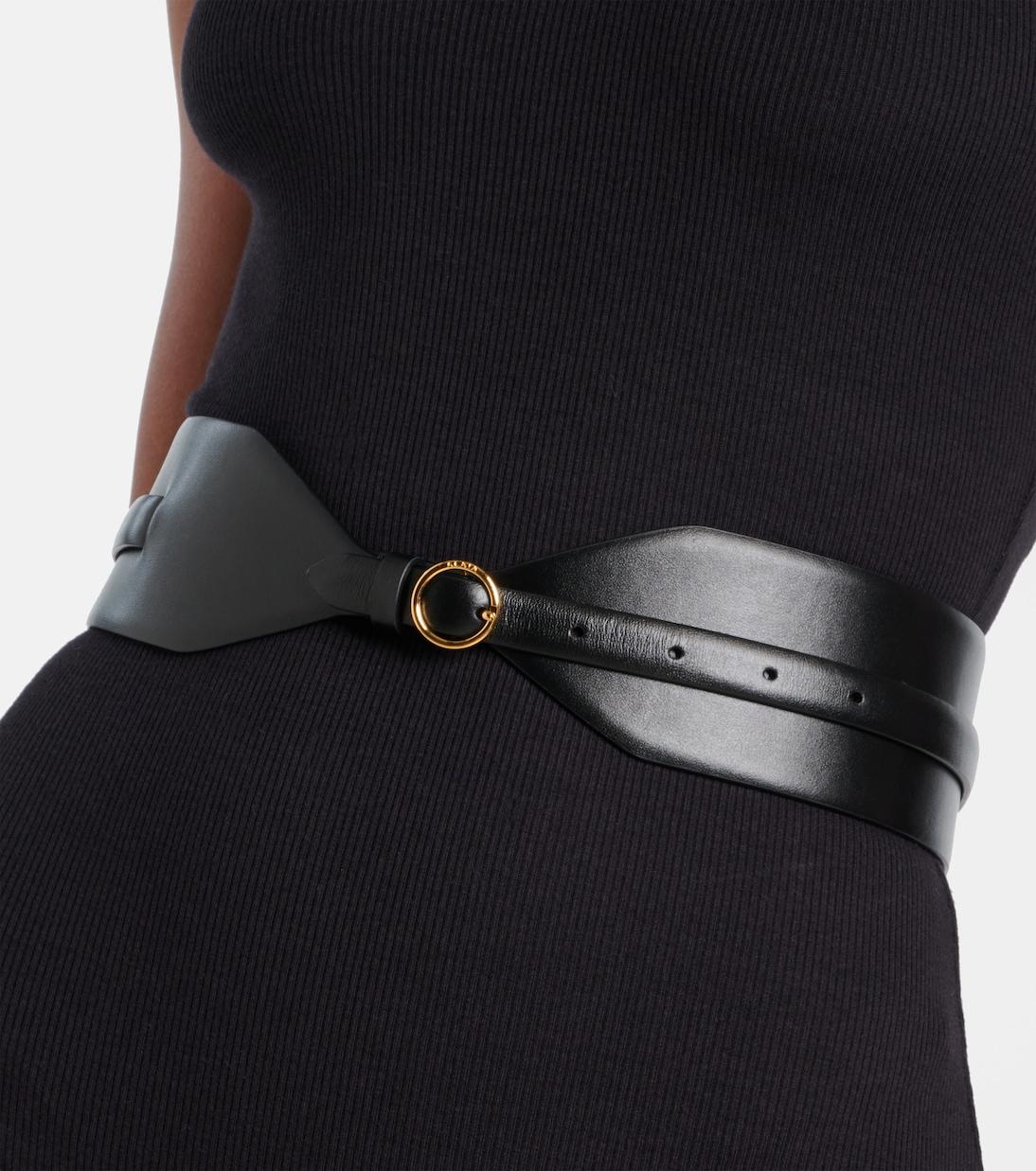 Создайте изысканный образ с аксессуарами Alaïa, например, этим ремнём. Ремень изготовлен в Италии из гладкой кожи и состоит из широкой и тонкой полос, перекрывающих друг друга, а также круглой пряжки.