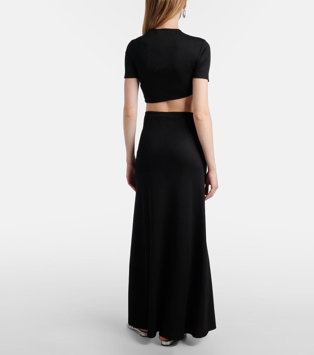 Изделия Кристофера Эсбера излучают тонкую уверенность и силу, отражающие образ современной женщины. Юбка макси с узором пейсли спереди имеет разрез, дополненный сборками, расположенными сбоку и украшенными фирменной металлической фурнитурой с узором пейсли.