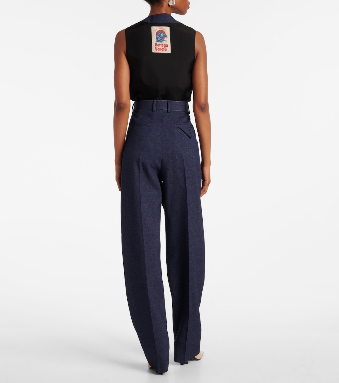 Создайте элегантный повседневный ансамбль с такими вещами, как эти зауженные брюки от Bottega Veneta. Эта пара, искусно выполненная из пёстрой шерстяной пряжи с эффектом индиго, дополнена складками и видимыми швами.