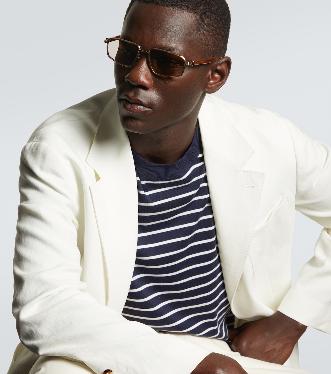 Солнцезащитные очки Jarama прямоугольной формы от Brunello Cucinelli, изготовленные в Италии, украсят любой образ своим элегантным, сбалансированным дизайном. Их отличительной чертой является лазерная гравировка надписи на внутренней стороне заушников.