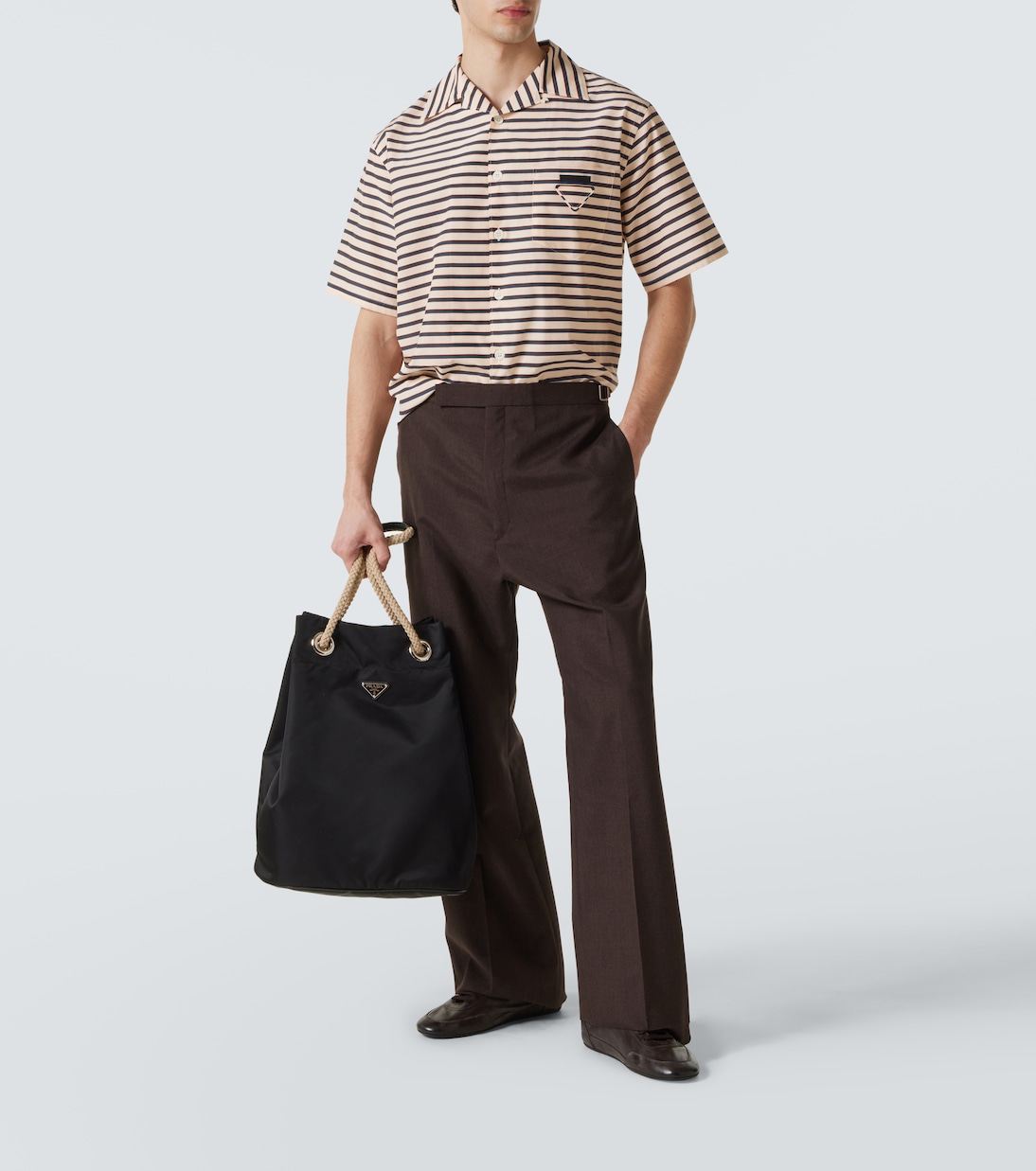 Полосатая хлопковая рубашка для боулинга Prada, Opale 190 050₽