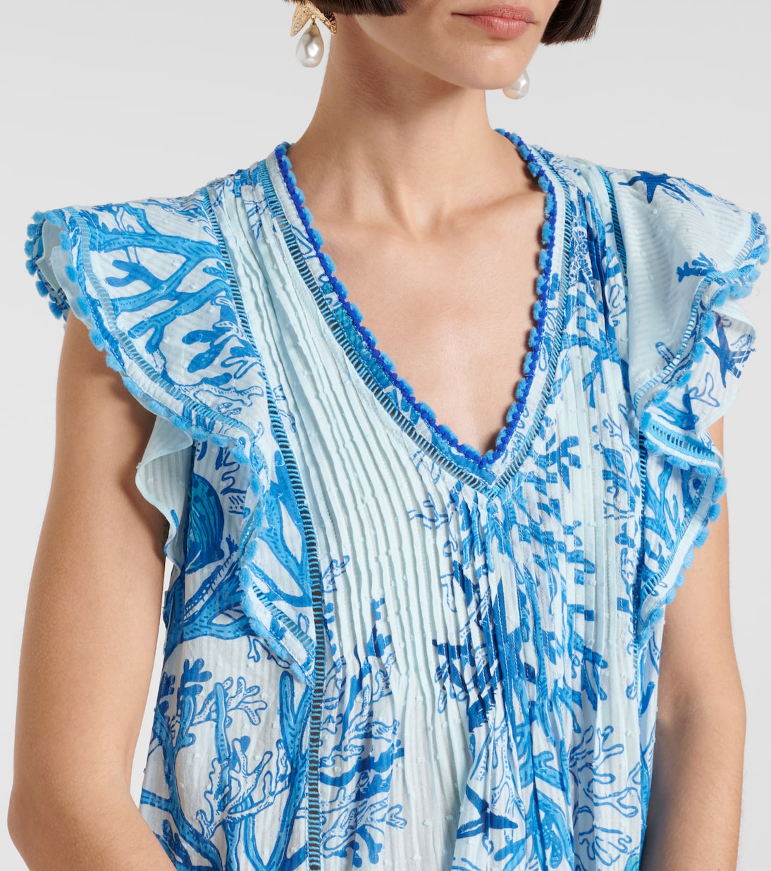 Составьте свой отпускной гардероб на основе прекрасных, воздушных моделей Poupette St Barth. Мини-платье Camelia из дышащего и лёгкого хлопка с изящными складками сверху дополнено фирменным морским узором, который придаёт ему ещё больше очарования.