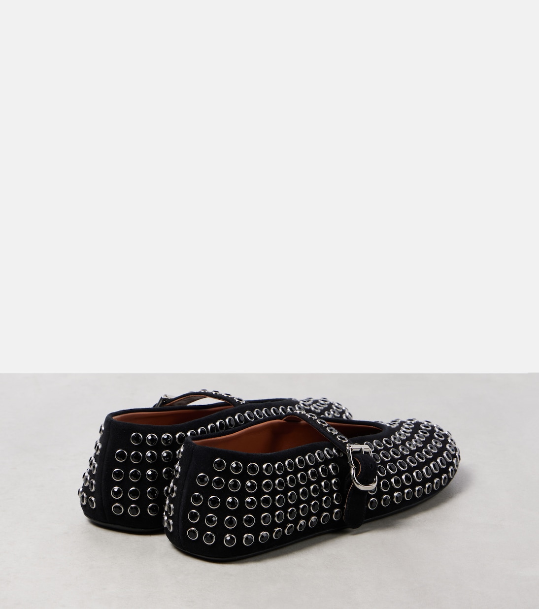 Балетки из замши с кристаллами Alaïa, нуар 138 335₽