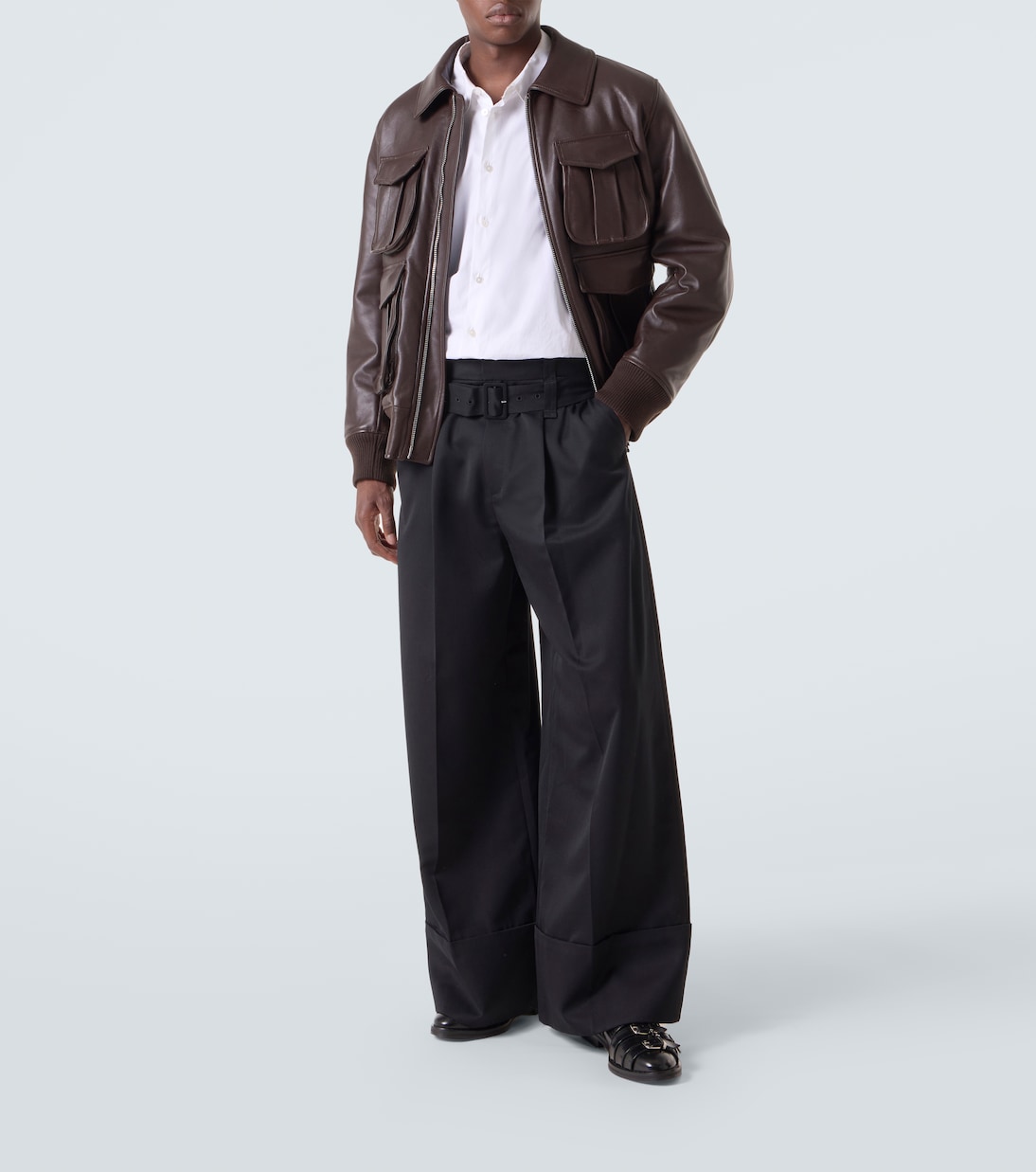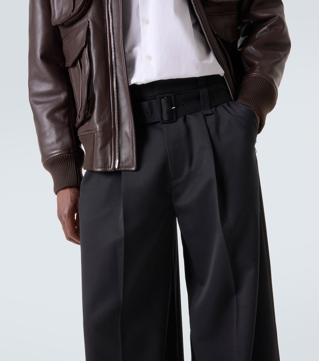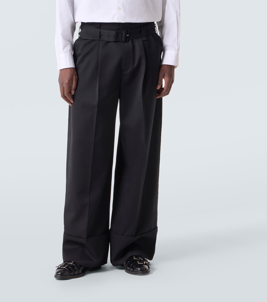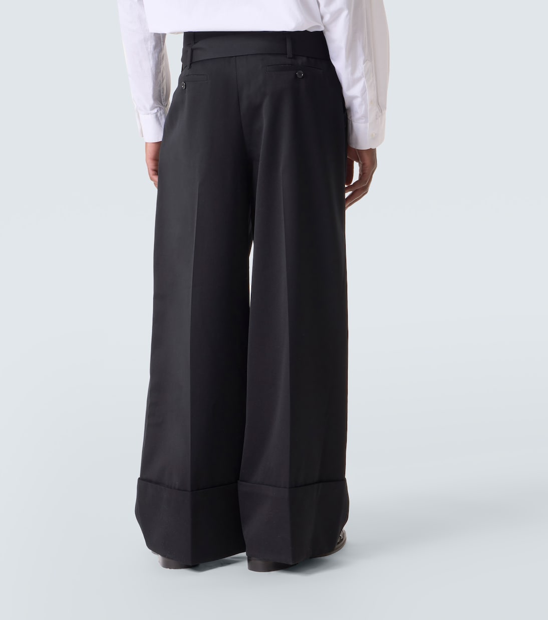 Искусная эстетика Simone Rocha, ставшая неотъемлемой частью Недели моды в Лондоне, представляет собой революционный взгляд на современный стиль. Эти брюки с высокой посадкой выполнены из шерстяной смеси, имеют пояс на талии и широкие брючины.