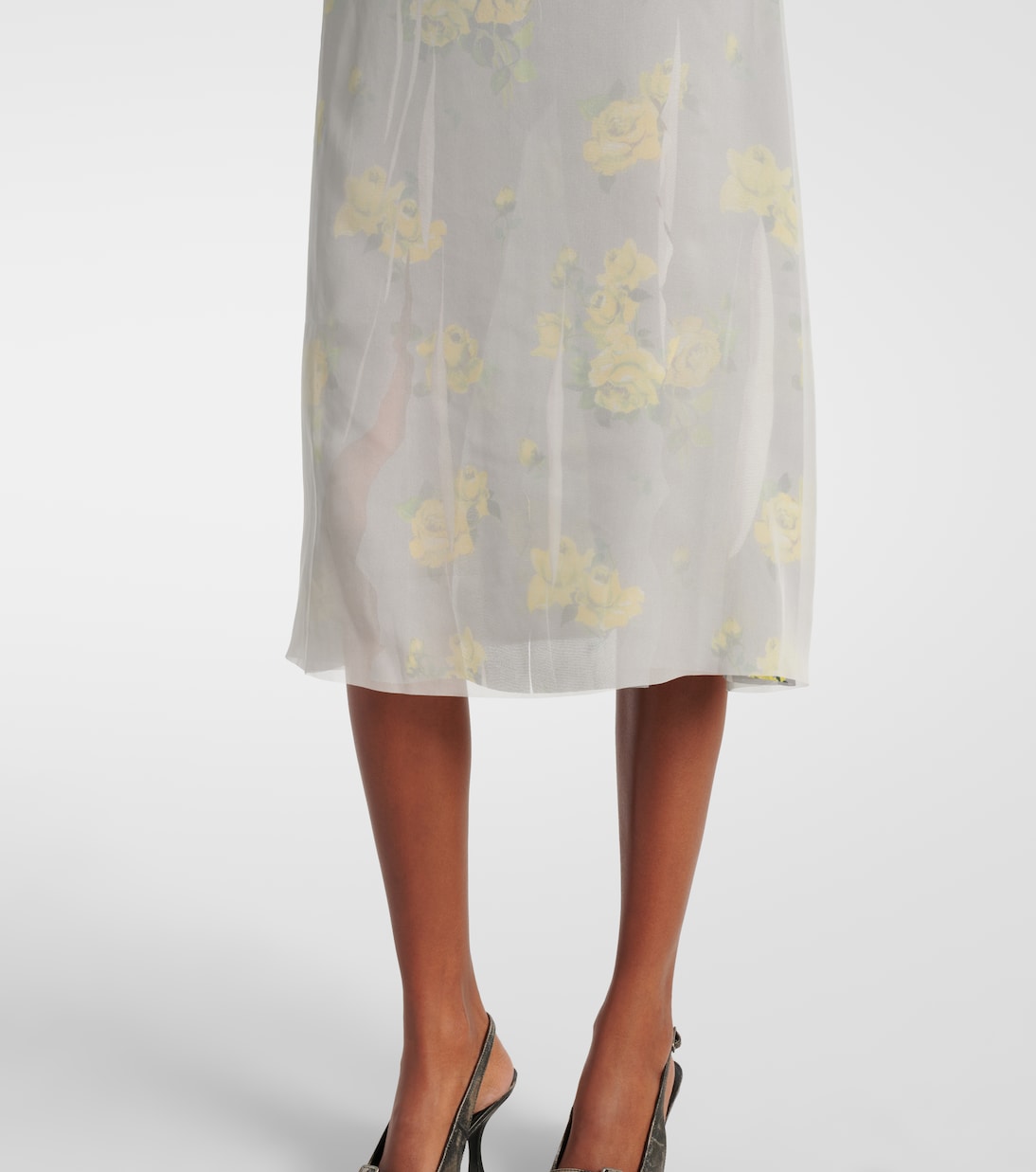 Стокгольмский бренд Acne Studios завоевал прочную популярность благодаря своей скандинавской эстетике. Эта юбка миди из полупрозрачной сетки украшена пастельным цветочным принтом.