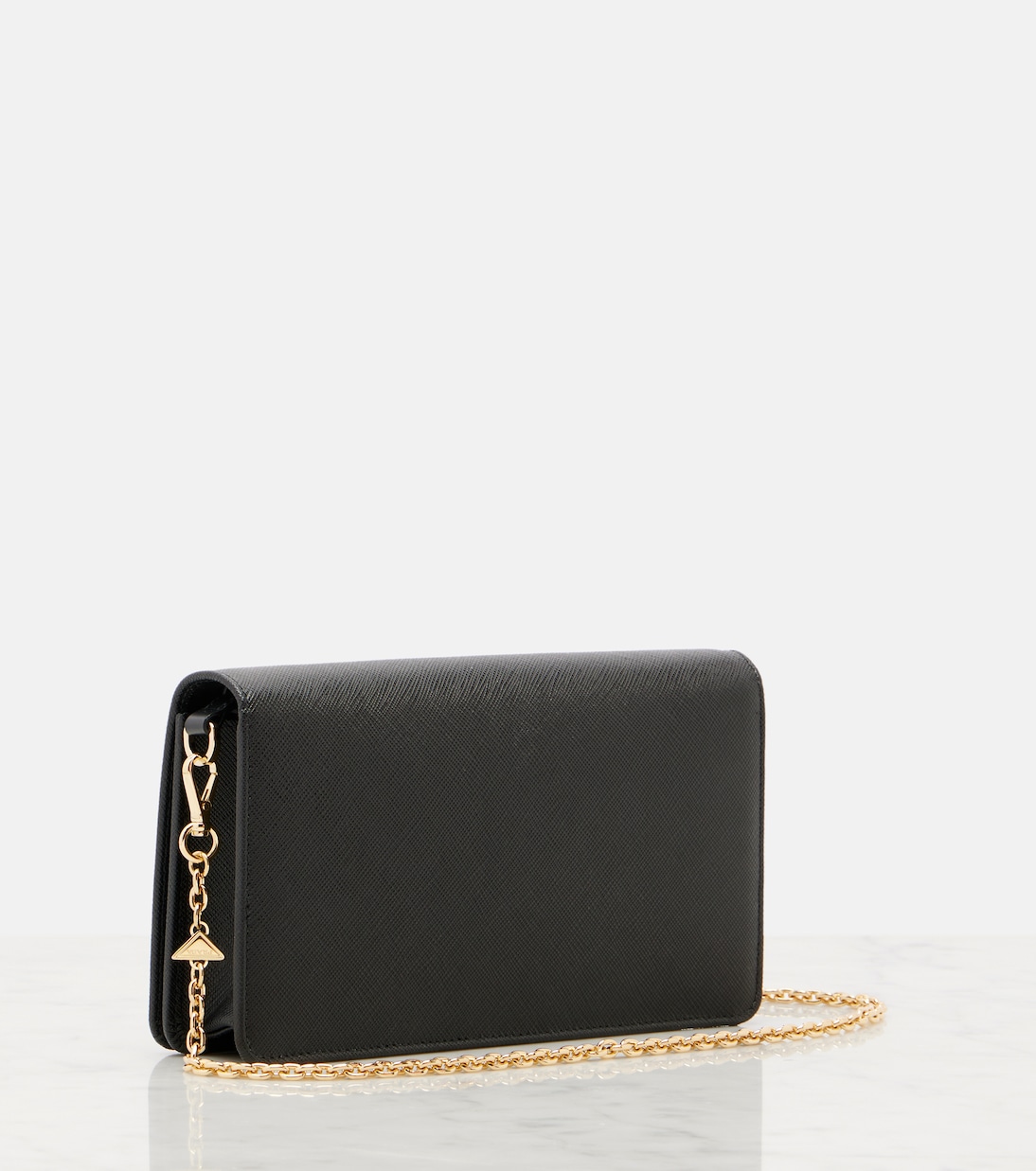 Использование Prada кожи Saffiano с перекрёстной фактурой восходит к Марио Праде, который ценил её изысканность и долговечность. Эта мини-сумка через плечо оснащена съёмным золотистым ремнём, поэтому её можно носить как клатч.