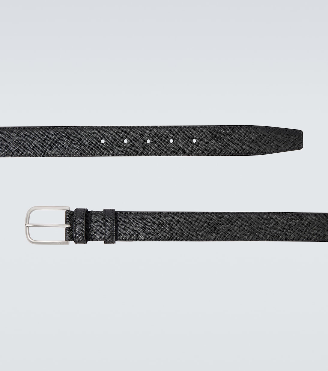 Использование Prada кожи Saffiano с перекрёстной штриховкой восходит к Марио Праде, который ценил её изысканность и долговечность. Этот ремень — элегантный и универсальный, с пряжкой с гравировкой логотипа.