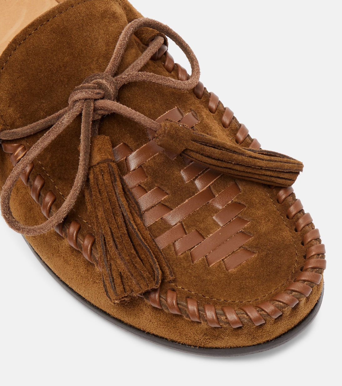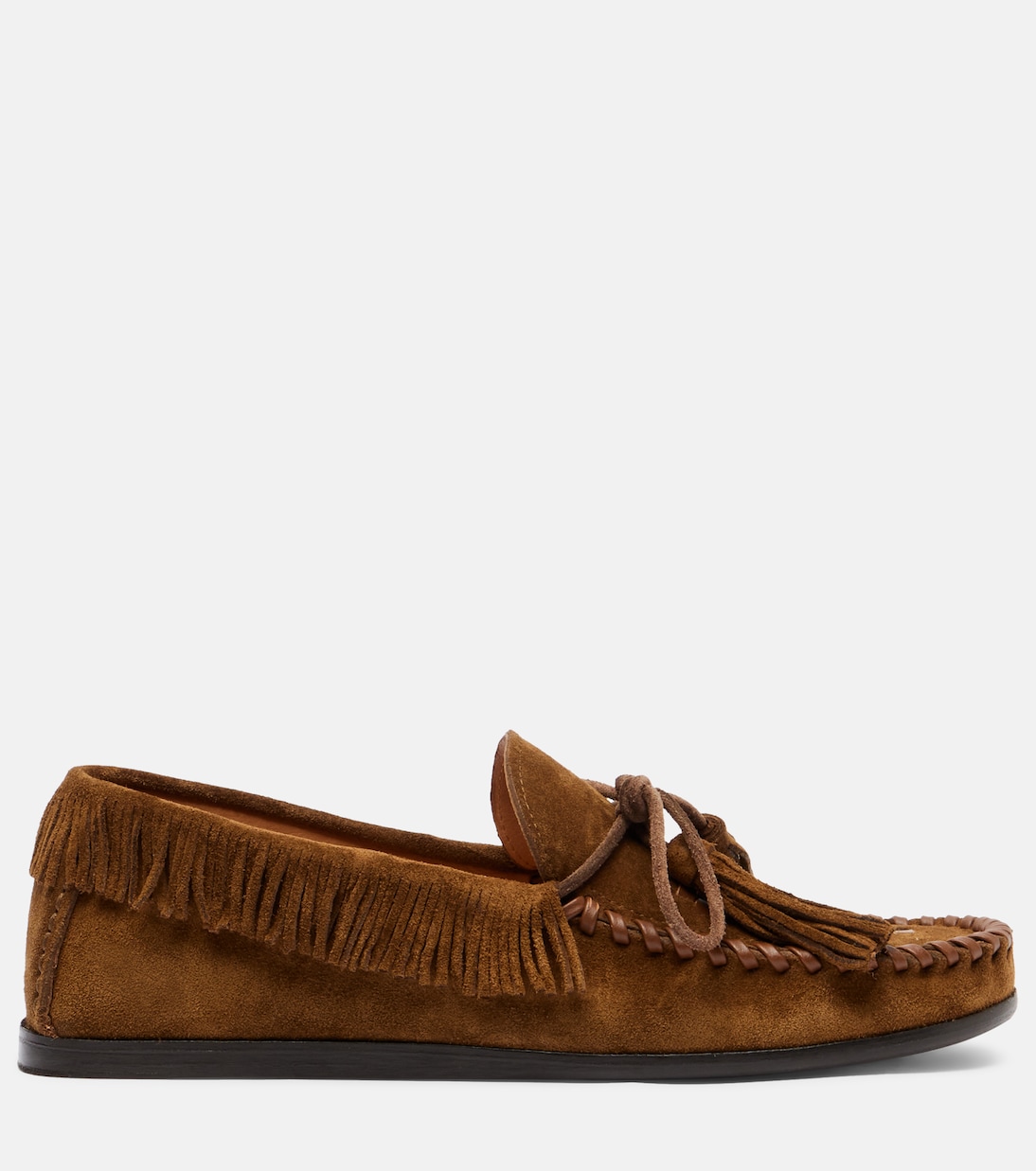 Каждая модель Isabel Marant, воплощающая аутентичный и непринужденный парижский стиль, создана для того, чтобы вы легко добрались из пункта А в пункт Б. Замшевые лоферы Fitza бежевого оттенка дополнены шнурками с кисточками, бахромой и плетением на носках.