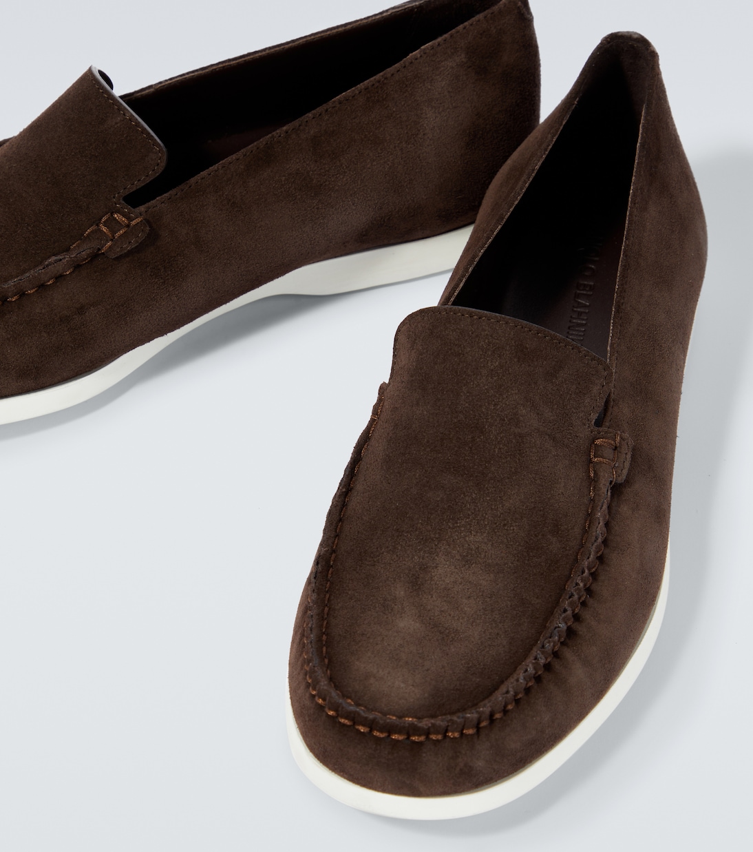 Каждая модель обуви от Manolo Blahnik начинается с эскиза самого дизайнера. Лоферы Monaco из коричневой замши — мечта минималиста благодаря своему элегантному силуэту и контрастной белой подошве.