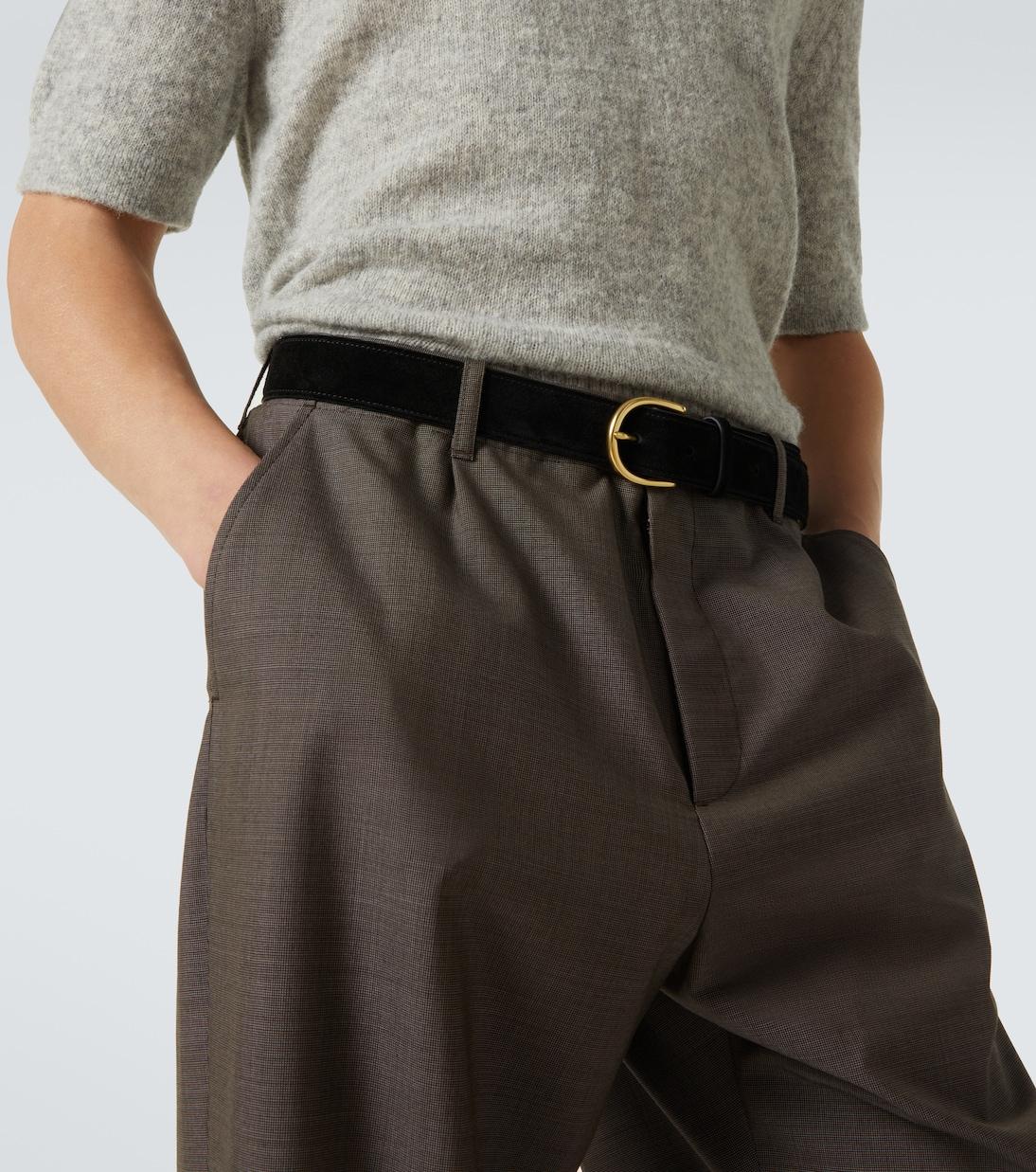 Каждая пара George Cleverley, бережно хранимая ценителями изысканного вкуса, воплощает в себе наследие исключительного мастерства. Этот ремень изготовлен из замши с золотистой фурнитурой.