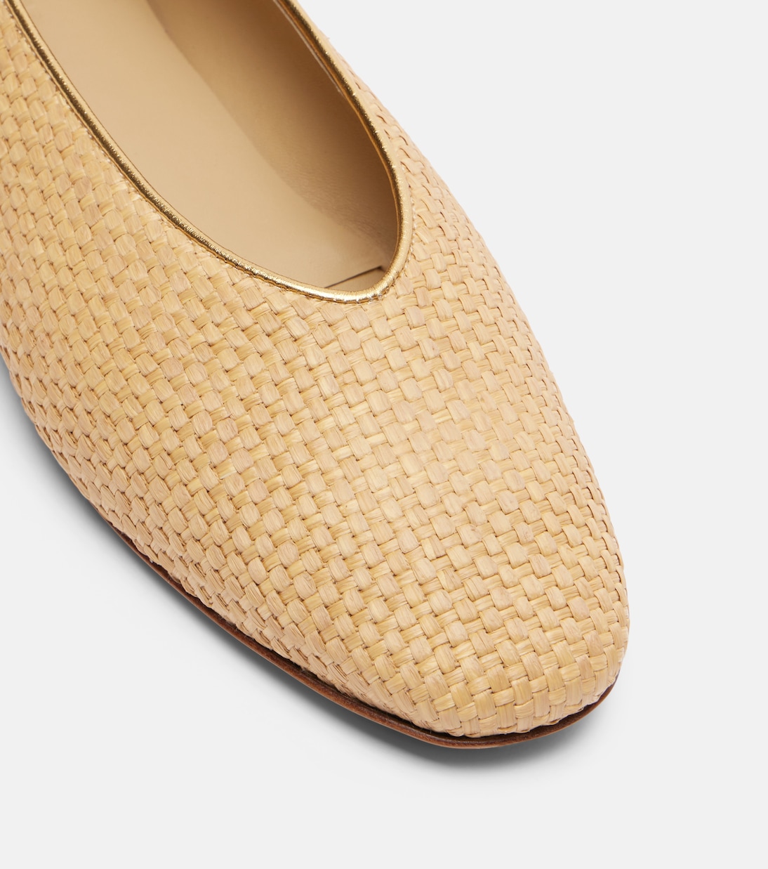 Каждая пара обуви Le Monde Béryl, одновременно практичная и изысканная, тщательно изготовлена в Италии с использованием проверенных временем ремесленных техник. Балетки Regency искусно сплетены из рафии с отделкой из металлизированной кожи.