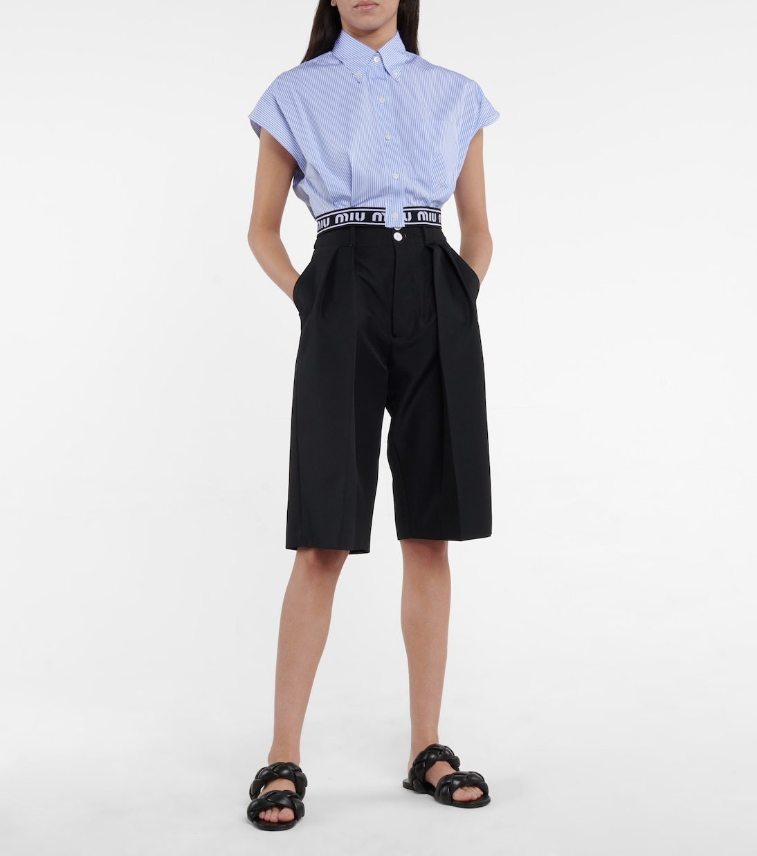 Каждая поклонница Miu Miu ценит непринужденный стиль и обязательно наденет эти элегантные и в то же время удобные шлёпанцы этим летом. Эта чёрная пара с плетёными кожаными ремешками и лёгкой подкладкой делает их ещё удобнее. Носите их с джинсами или мини-платьями бренда.