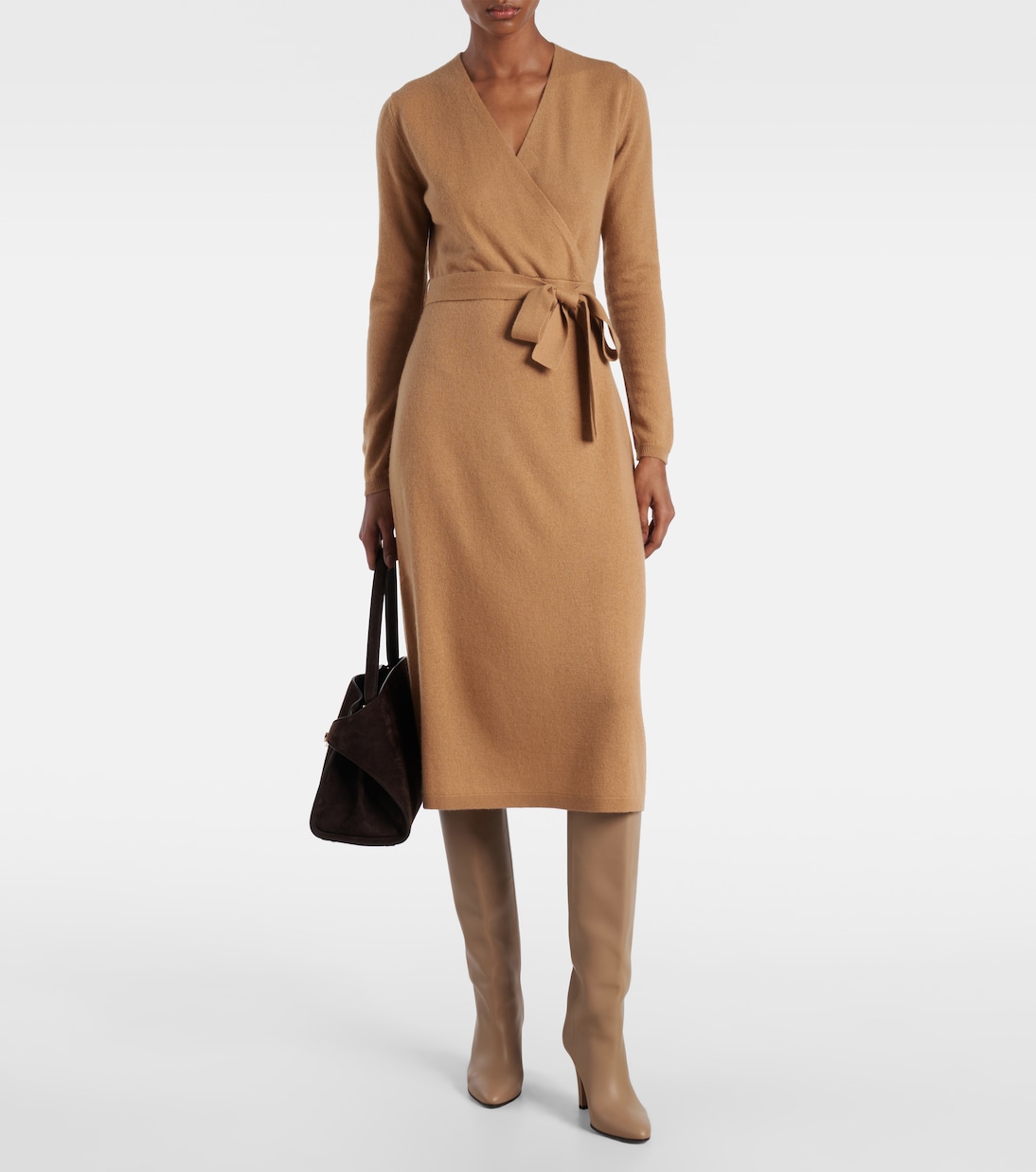 Каждому нужны роскошные базовые вещи от Jardin des Orangers в гардеробе. Это платье миди из шерсти и кашемира имеет элегантный силуэт с запахом.