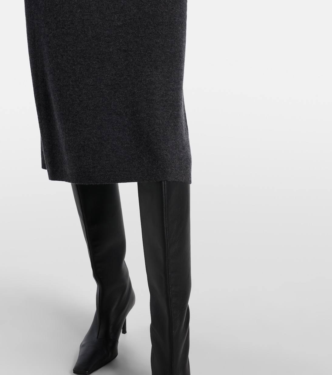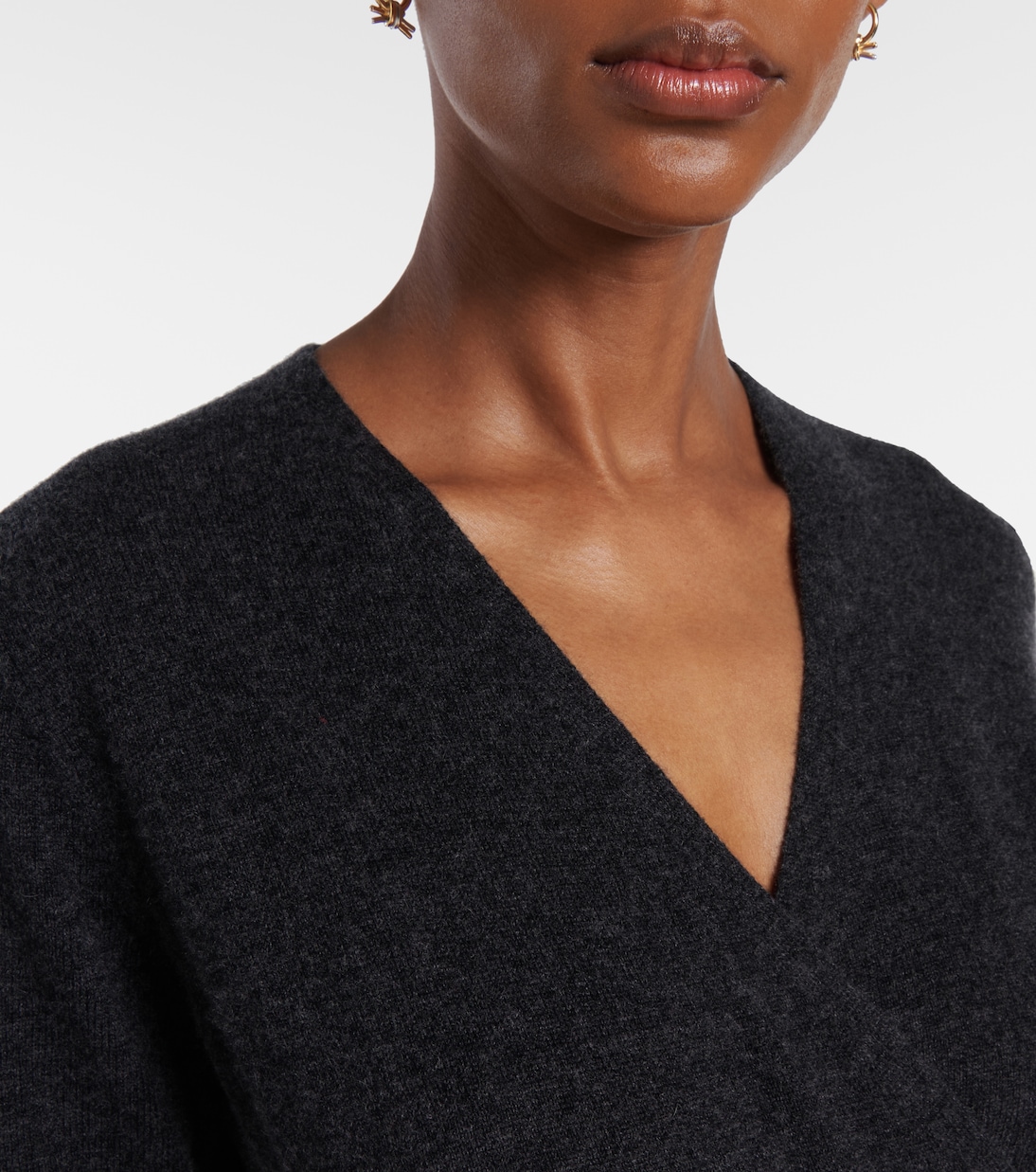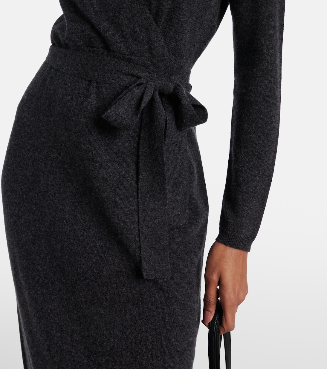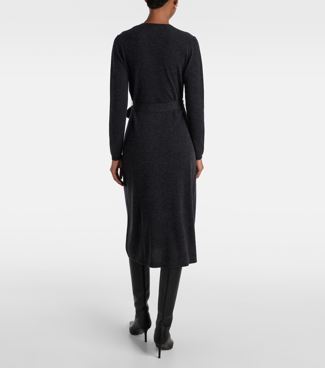 Каждому нужны роскошные базовые вещи от Jardin des Orangers в гардеробе. Это платье миди из шерсти и кашемира имеет элегантный силуэт с запахом.