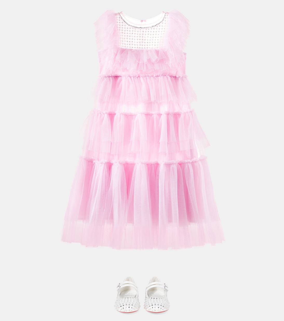 Каждый принт Tutu Du Monde создается вручную, на создание уходит до 120 часов. Платье из тюля Bright Star не исключение: воздушный многоярусный силуэт и лиф, расшитый сверкающими пайетками.