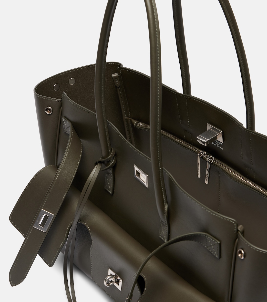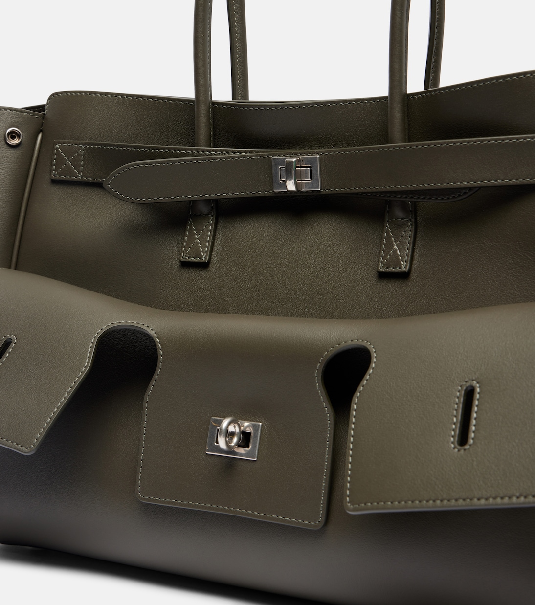 Сумка-тоут Bel Air Medium от Balenciaga, изготовленная из мягкой кожи, отличается вместительным силуэтом и длинными ручками для универсального ношения. Дизайн в стиле деконструкции дополнен застежкой-клош с двумя разъёмными кольцами и поворотным замком.