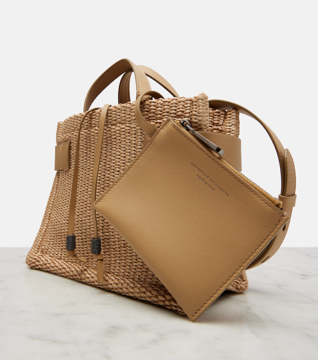 Сумка-тоут Essence Large от Brunello Cucinelli изготовлена в Италии из рафии с кожаными деталями. Она оснащена съёмным плечевым ремнём и застёжкой-шнурком, украшенной фирменной нитью Monili.