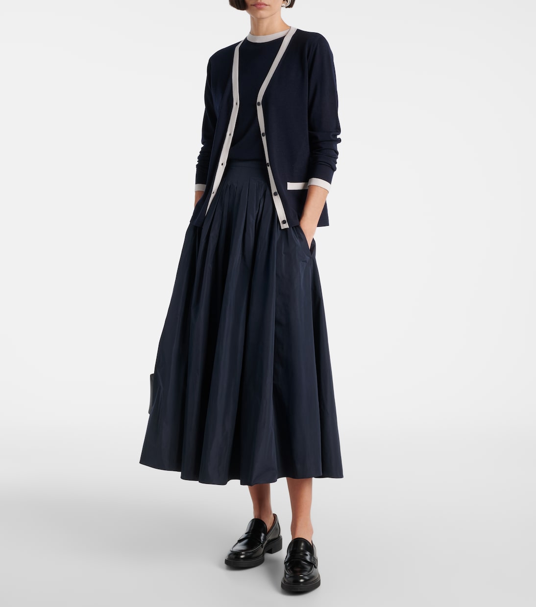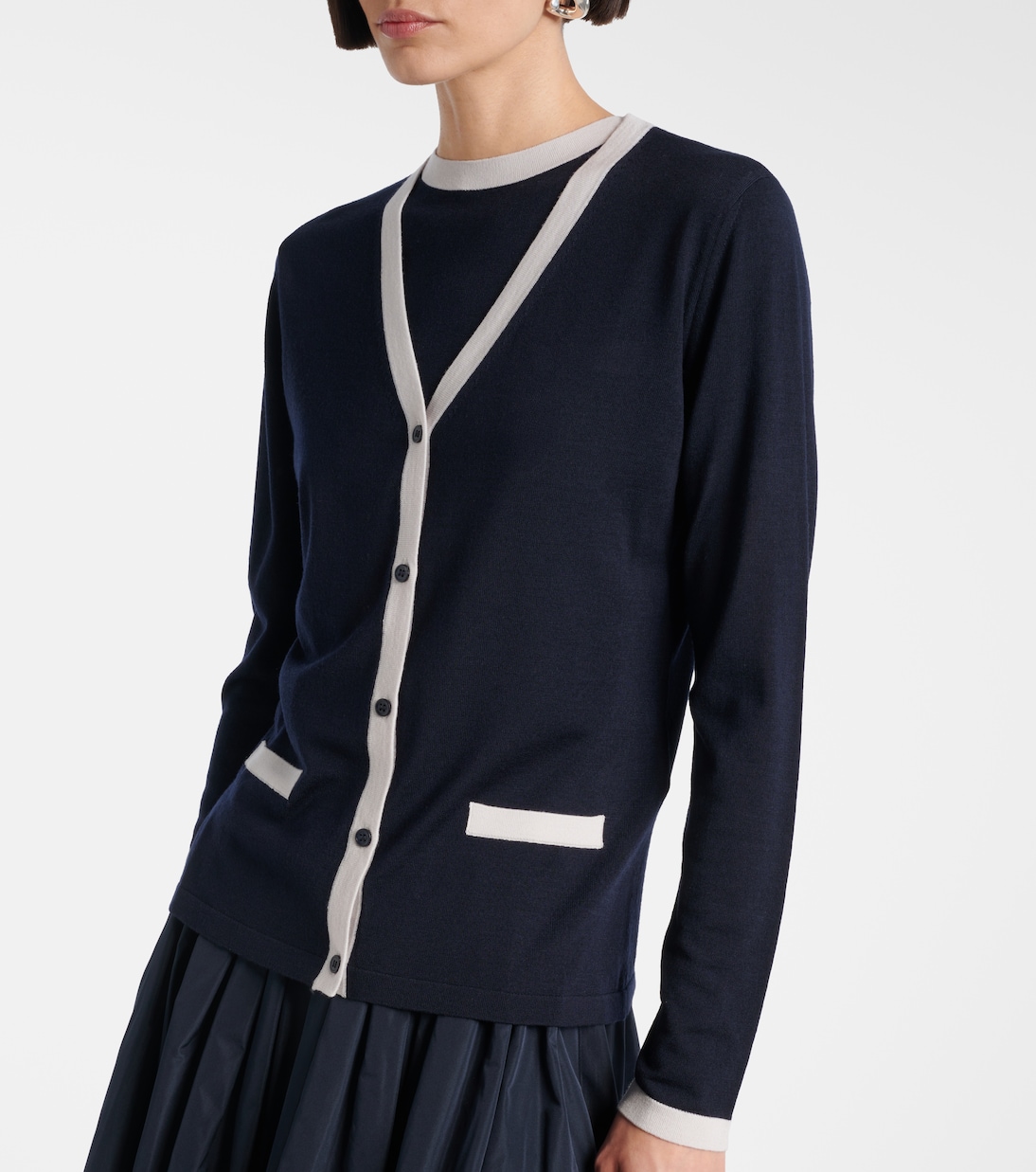 Кардиган Kenya от S Max Mara, выполненный из тонкой натуральной шерсти, отличается привлекательным V-образным вырезом, длинными рукавами и прорезными карманами спереди. Дизайн дополнен контрастной отделкой и застежкой на пуговицы спереди, что создает классический, изысканный образ.