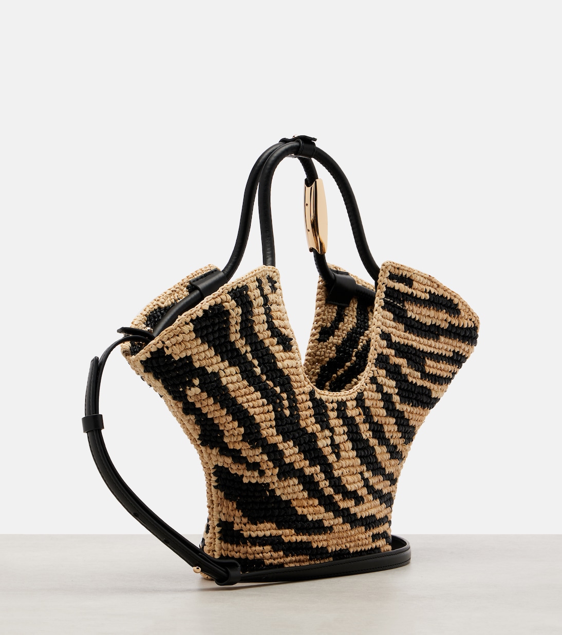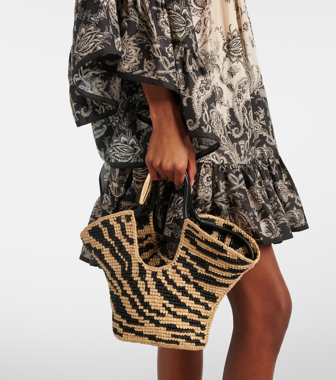 Сумка-тоут Goldentime от Zimmermann, сотканная вручную из рафии с очаровательным узором «Зебра» по всей поверхности, идеально подходит для всех ваших летних вещей. Модель отличается рельефным силуэтом, длинными ручками сверху и съёмным плечевым ремнём.
