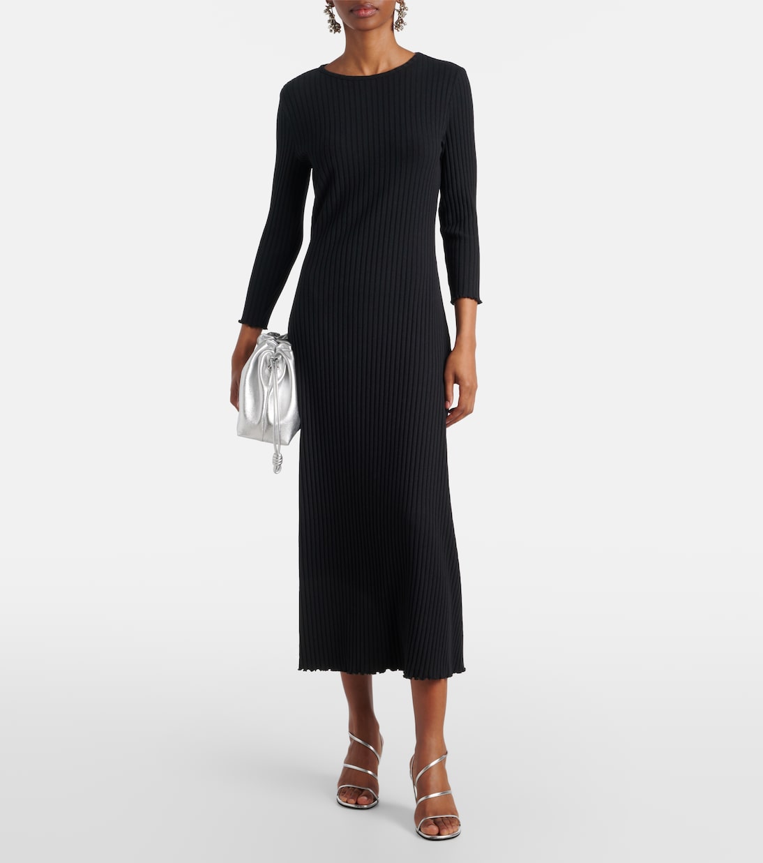 Классическое платье Vince в рубчик дополнено изящными оборками по подолу и круглым вырезом. Вертикальный крой этого изделия подчеркнёт вашу фигуру и визуально удлинит её.