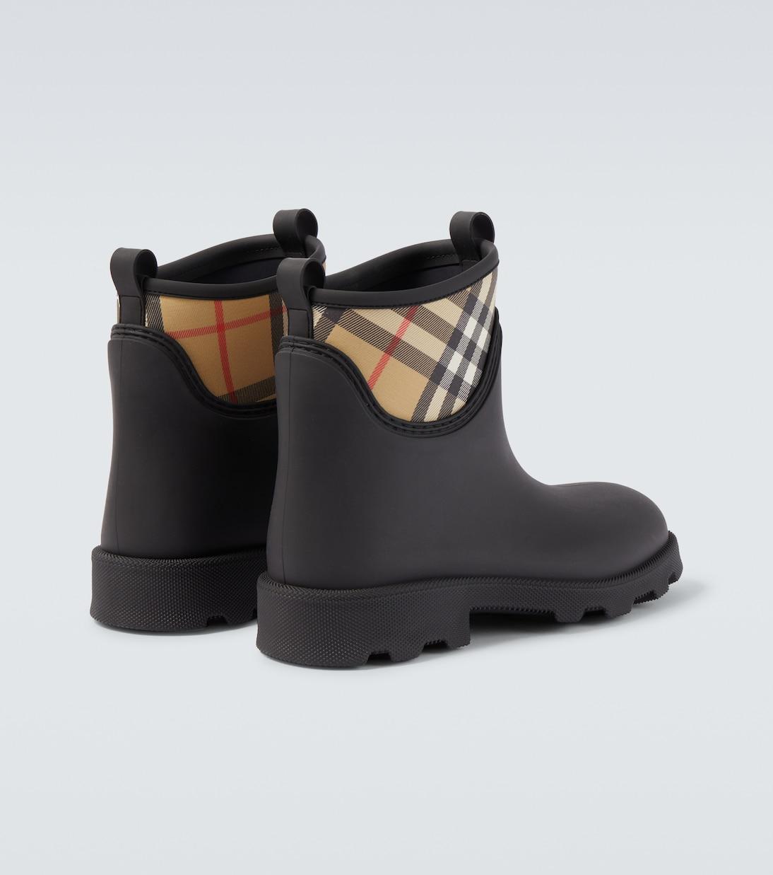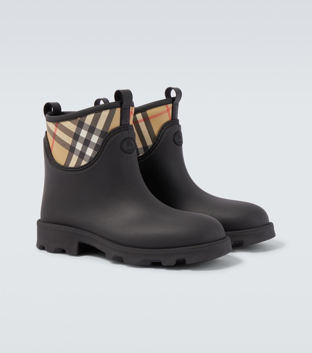 Клетчатый узор Burberry Check, ставший визитной карточкой дома, изначально использовался в качестве подкладки для тренчей в 1920-х годах. Эти резиновые сапоги до щиколотки отличаются закруглённым носком и фирменным узором на верхней части обуви.