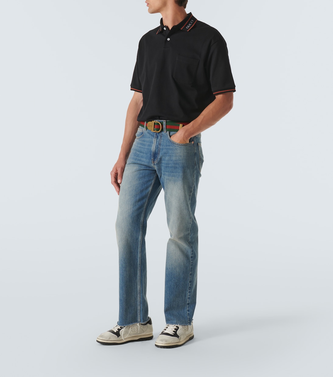Хлопковая пике-поло с добавками Gucci, Black/Mix