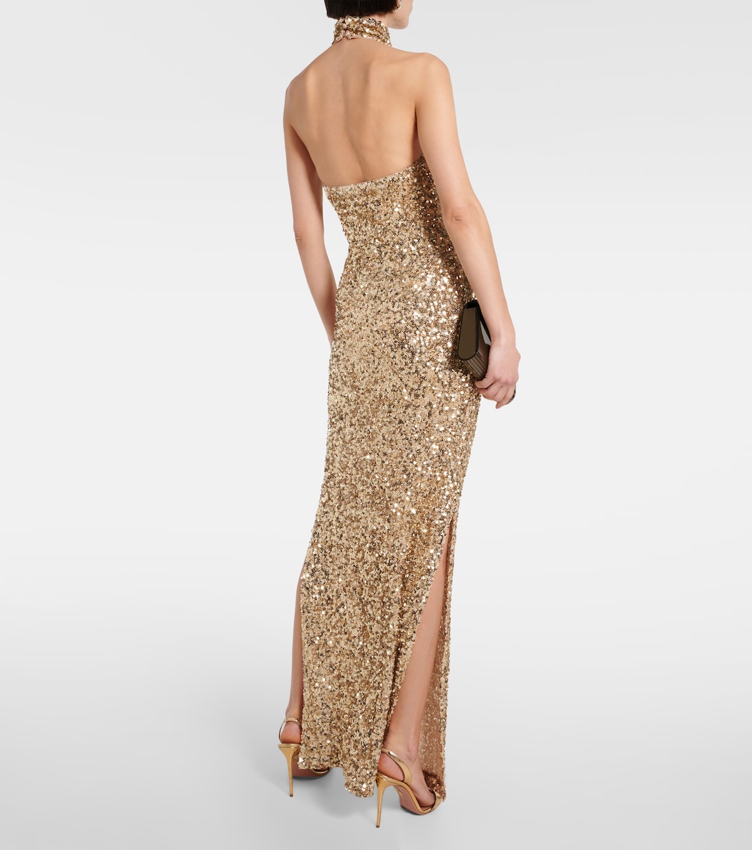 Блестящее платье с запахом на шее Rotate, золотой