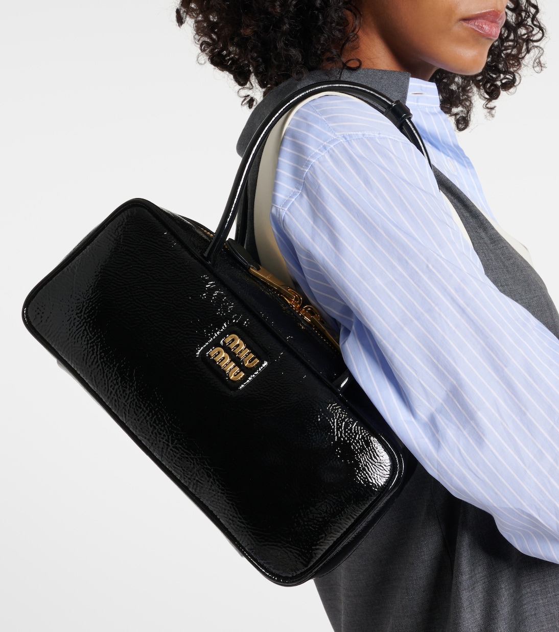Бо кожаная сумка-тоут с лаковым покрытием Miu Miu, черный 325 923₽